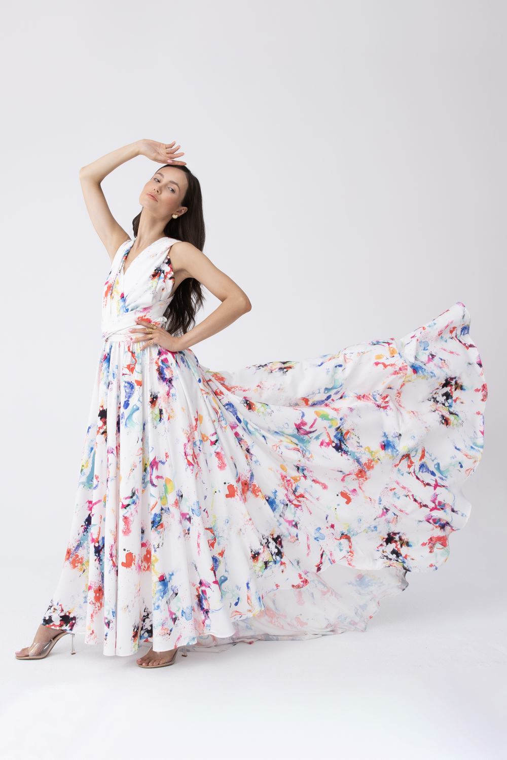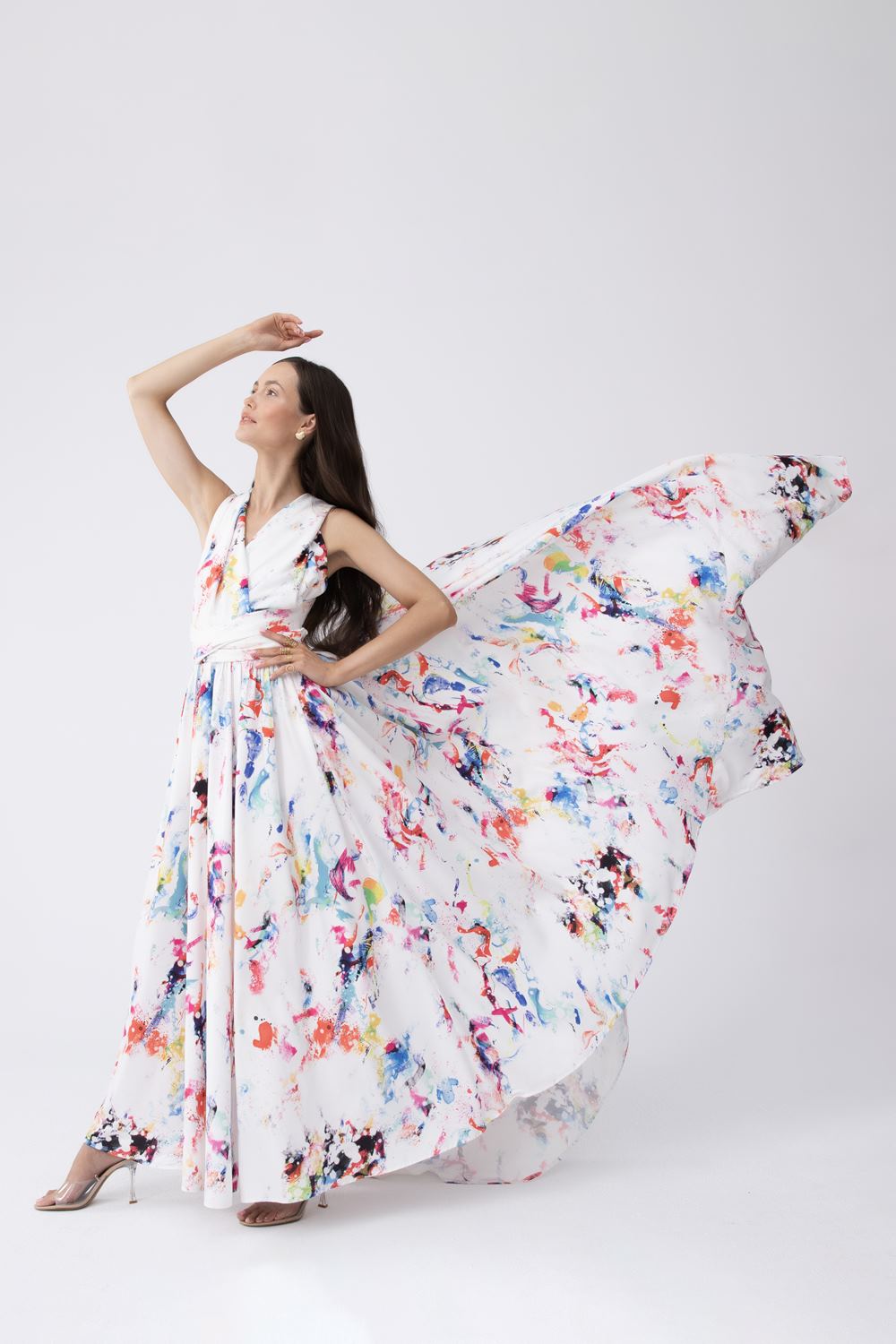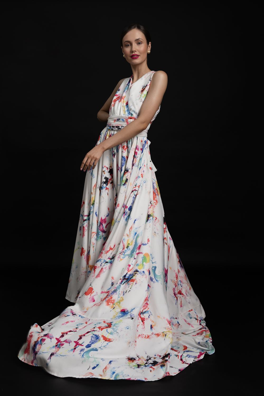 Sukienka Mystic Whispers została wykonana z wysokiej jakości materiału, który jest przyjemny w dotyku i zapewnia komfort noszenia. Jej długość sięga do ziemi, dodając elegancji i zmysłowości. Jej niepowtarzalna forma sprawia, że sukienka będzie idealna na naprawdę wyjątkowe okazje.