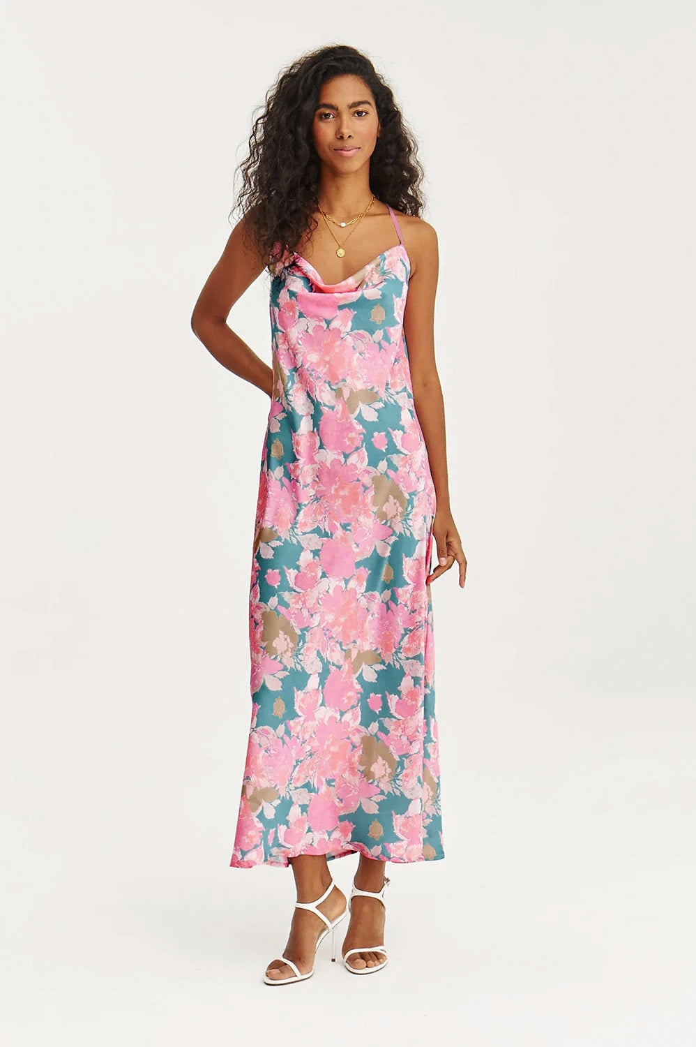 Gdy zmysłowość spotyka lekkość – powstaje sukienka na ramiączkach Primrose. Ta sukienka typu slip dress zachwyca subtelnym połyskiem, delikatnie opływając sylwetkę i eksponując plecy dzięki efektownemu skrzyżowaniu ramiączek.