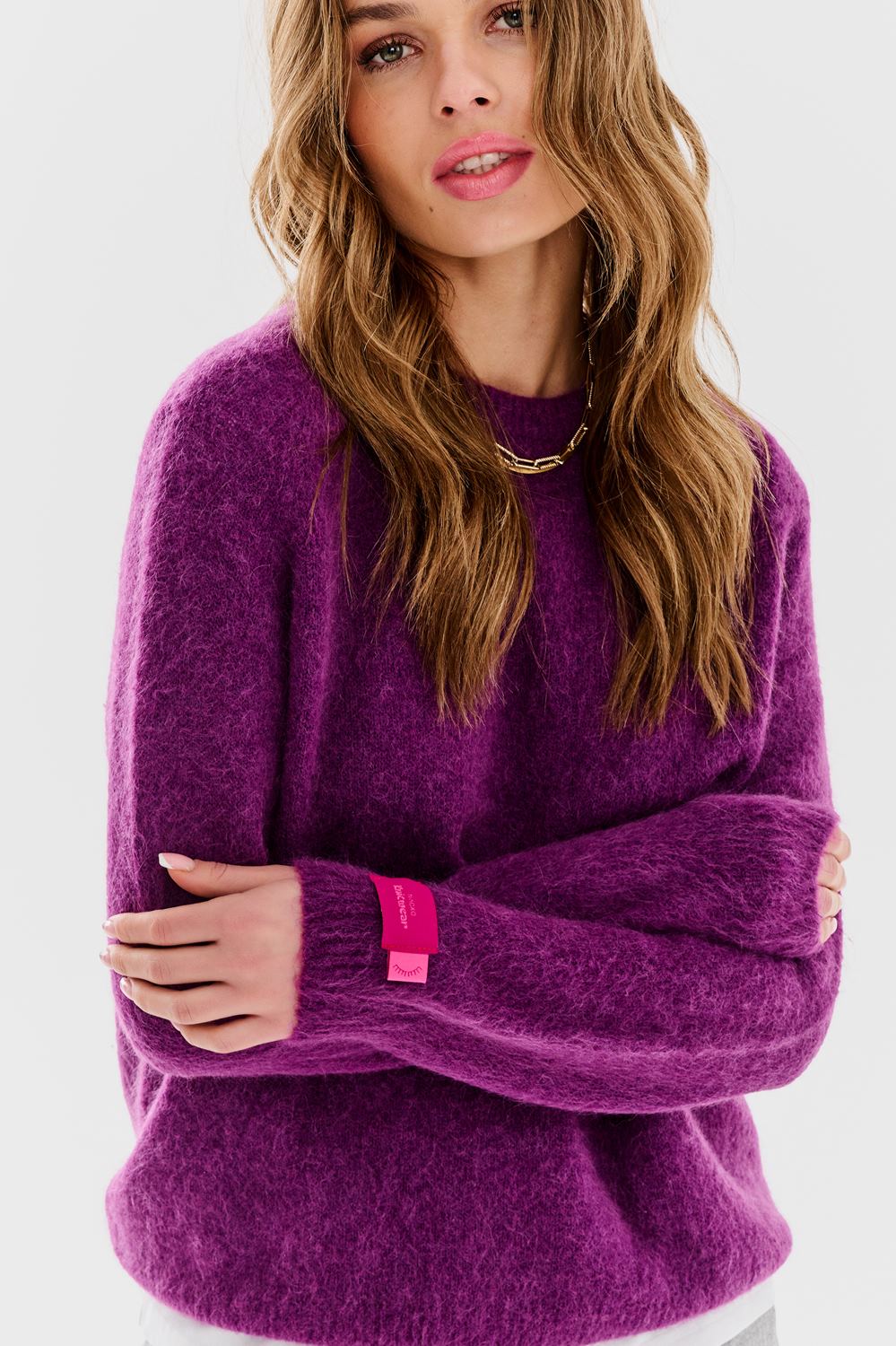 Sweter z wełną z alpaki Horizon to doskonały wybór na wiele okazji. Jego odcień fioletu dodaje subtelności i uroku, podkreślając jednocześnie Twoją indywidualność. Sweter posiada klasyczny, okrągły dekolt, nadając mu ponadczasowy charakter.