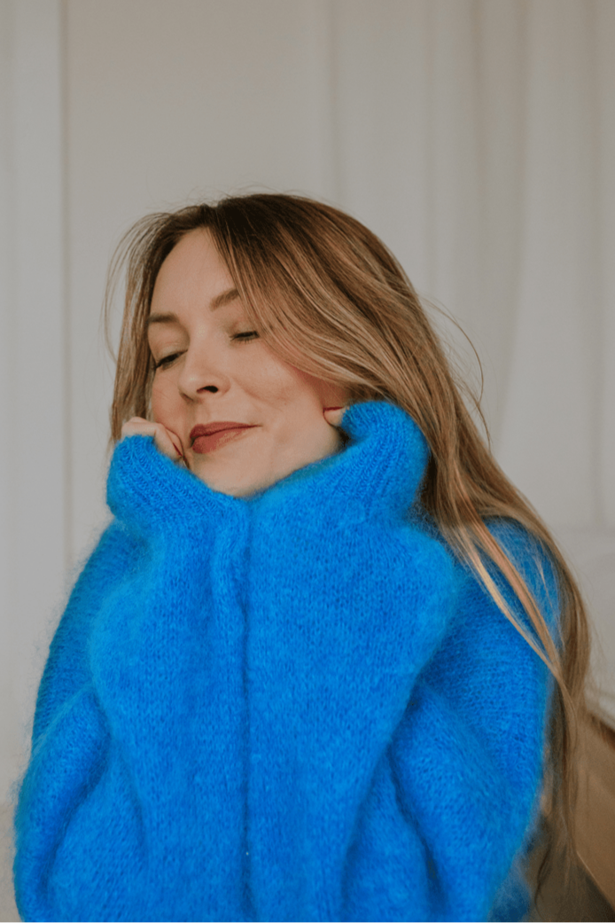 Sweter z dodatkiem moheru zapewnia komfort noszenia i otulenie w chłodniejsze dni. Blue Mirage to sweter, który łączy w sobie klasykę i wyrazisty charakter. Puszysta struktura materiału nadaje mu wyjątkowy wygląd, a intensywny kolor dodaje stylizacji świeżości i energii. Rękawy zakończone delikatnymi ściągaczami tworzą efektowny fason, a przy tym gwarantują wygodę noszenia.