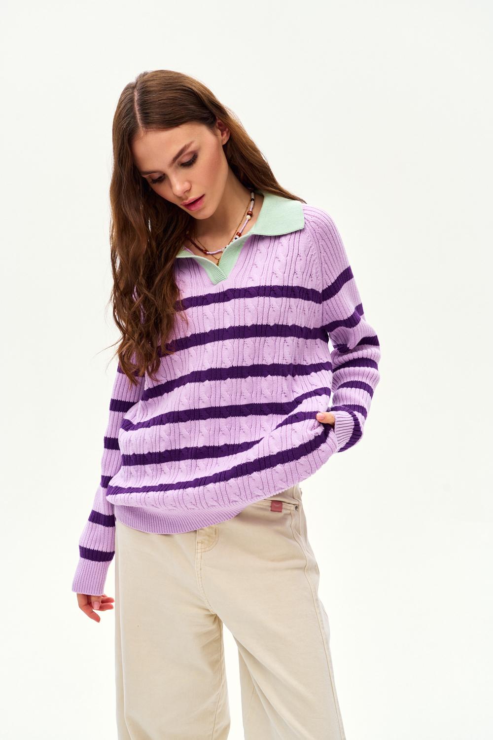 Fioletowy sweter polo – pastelowa świeżość