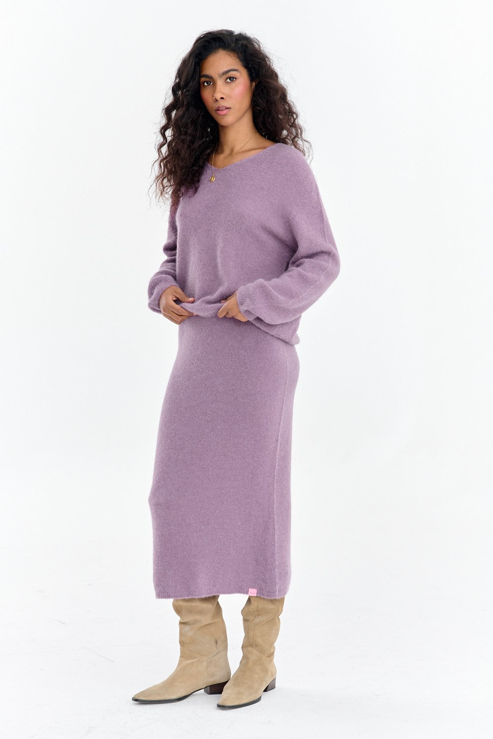 Sweter Pure Poetry to idealna propozycja dla fanek pastelowych kolorów. Wykonany z niezwykle miękkiej, przyjemnej dla skóry dzianiny w subtelnym, liliowym odcieniu. Swobodny krój oversize z lekko opuszczonymi ramionami to gwarancja wygody i stylowego luzu.