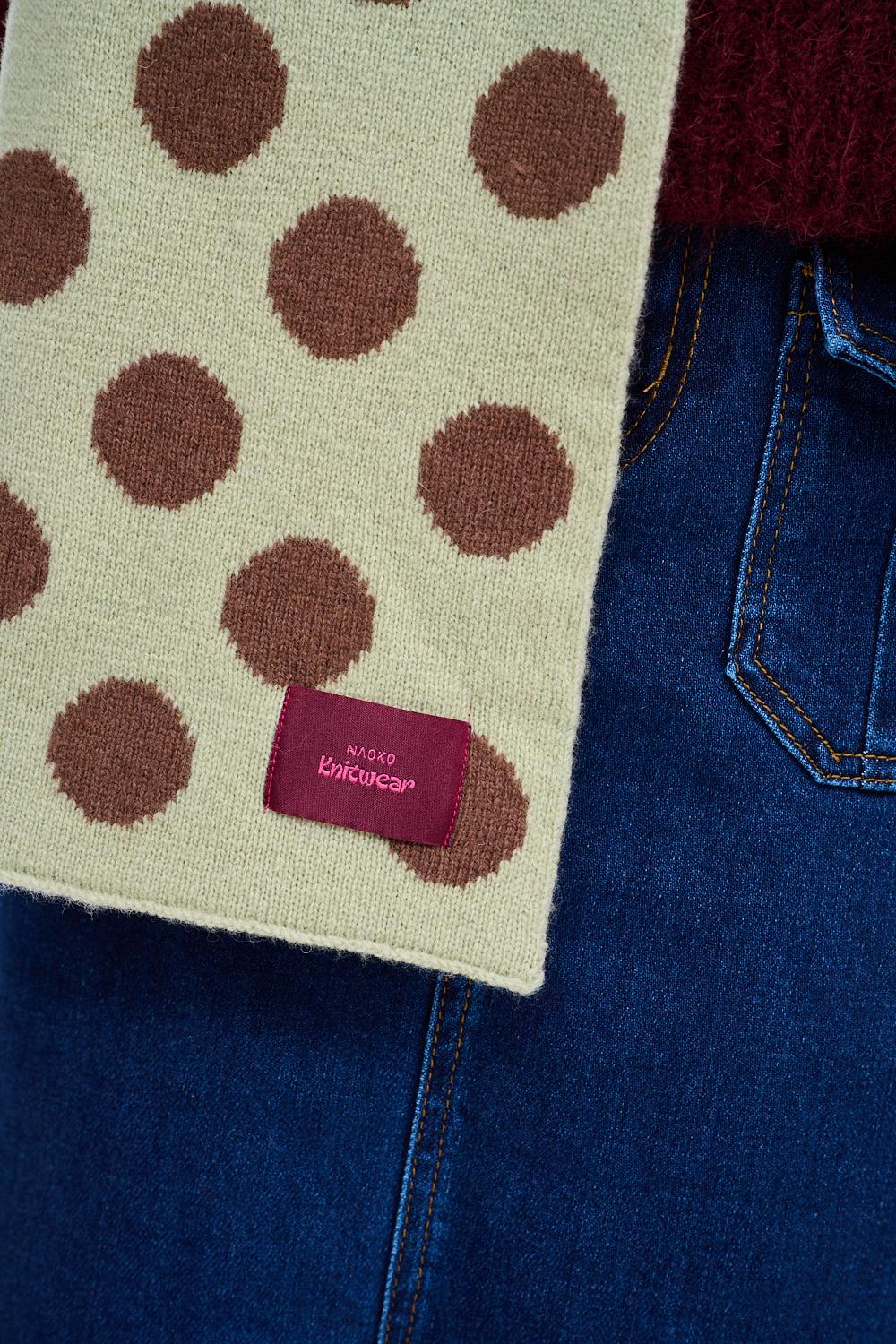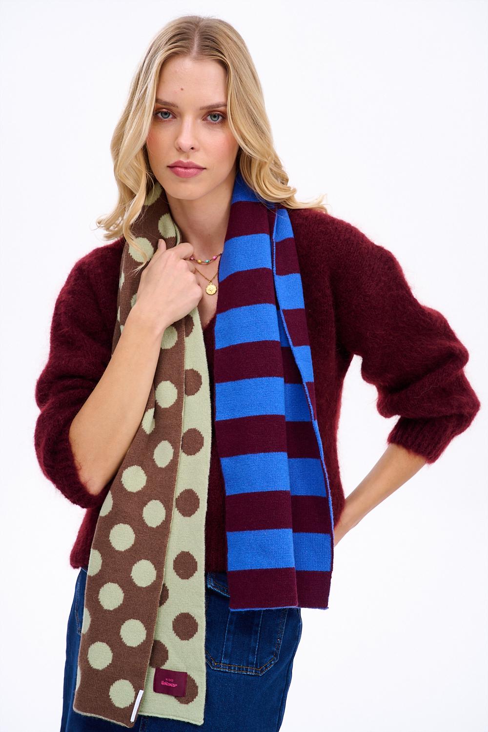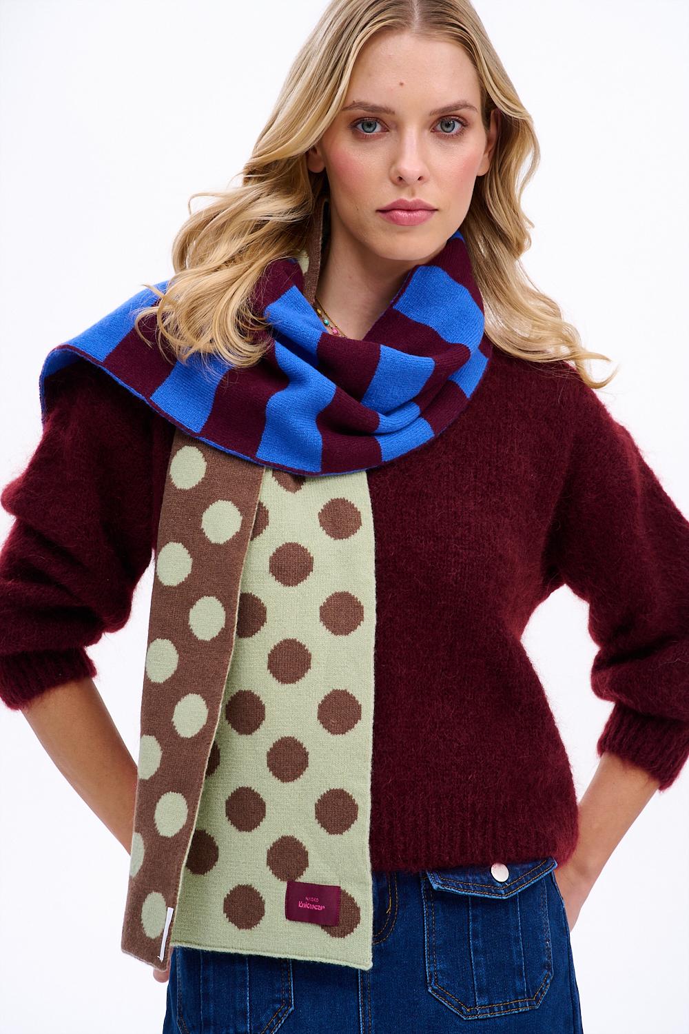 Szalik Biscuit to odważne połączenie klasyki i nowoczesności. Groszki i pasy w kontrastowych kolorach tworzą efektowny wzór, który od razu przyciąga wzrok i nadaje każdej stylizacji charakteru.