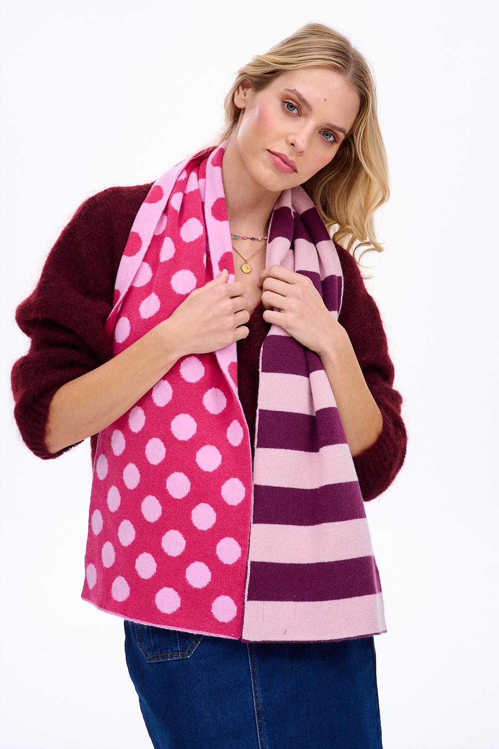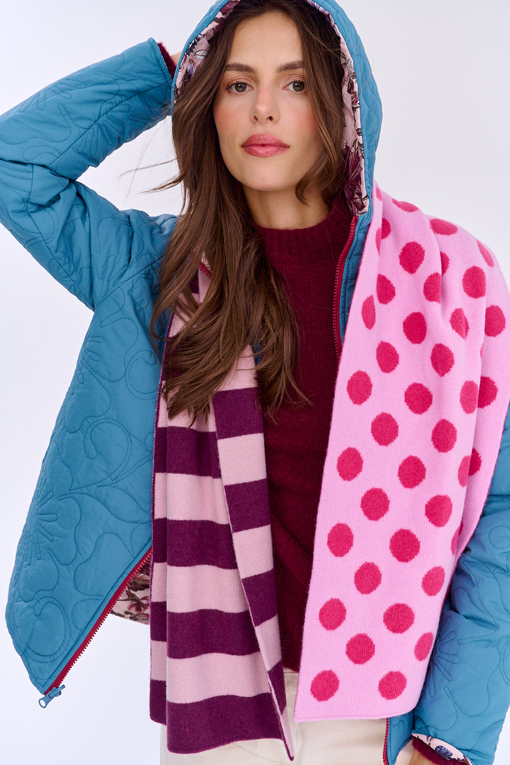 Szalik Cupcake to słodki akcent na chłodne dni – wzór groszków połączony z kontrastowymi pasami sprawia, że całość wygląda świeżo, energicznie i niezwykle stylowo. To dodatek, który przyciąga spojrzenia i dodaje lekkości każdej stylizacji.