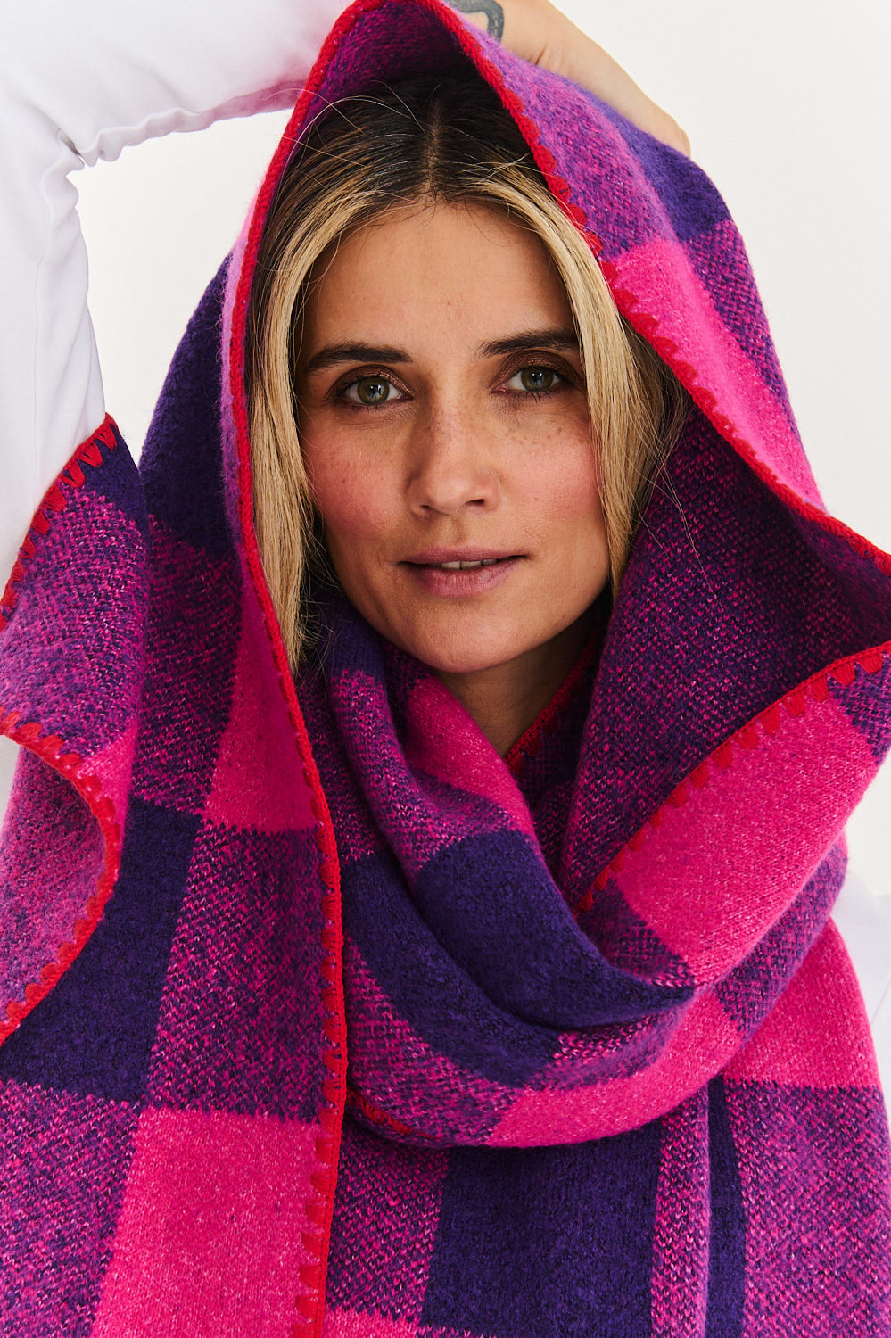 Szalik w kratę Nordic Fire to dodatek, obok którego nie da się przejść obojętnie. Energetyczne połączenie fuksji i fioletu w klasyczny wzór dużej kraty przyciąga wzrok i dodaje energii każdej, nawet najprostszej stylizacji.