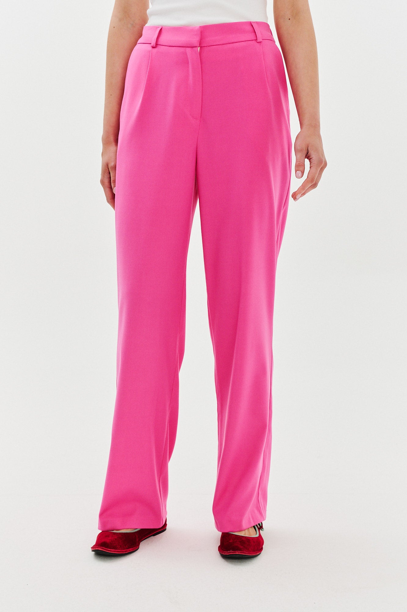 Róż, który nie zna kompromisów. Szerokie spodnie Bubblegum Attitude to odważna interpretacja klasyki – szerokie nogawki, minimalistyczny krój i intensywny, słodki jak guma balonowa kolor. To model dla tych, które wiedzą, czego chcą, i nie boją się tego pokazać.