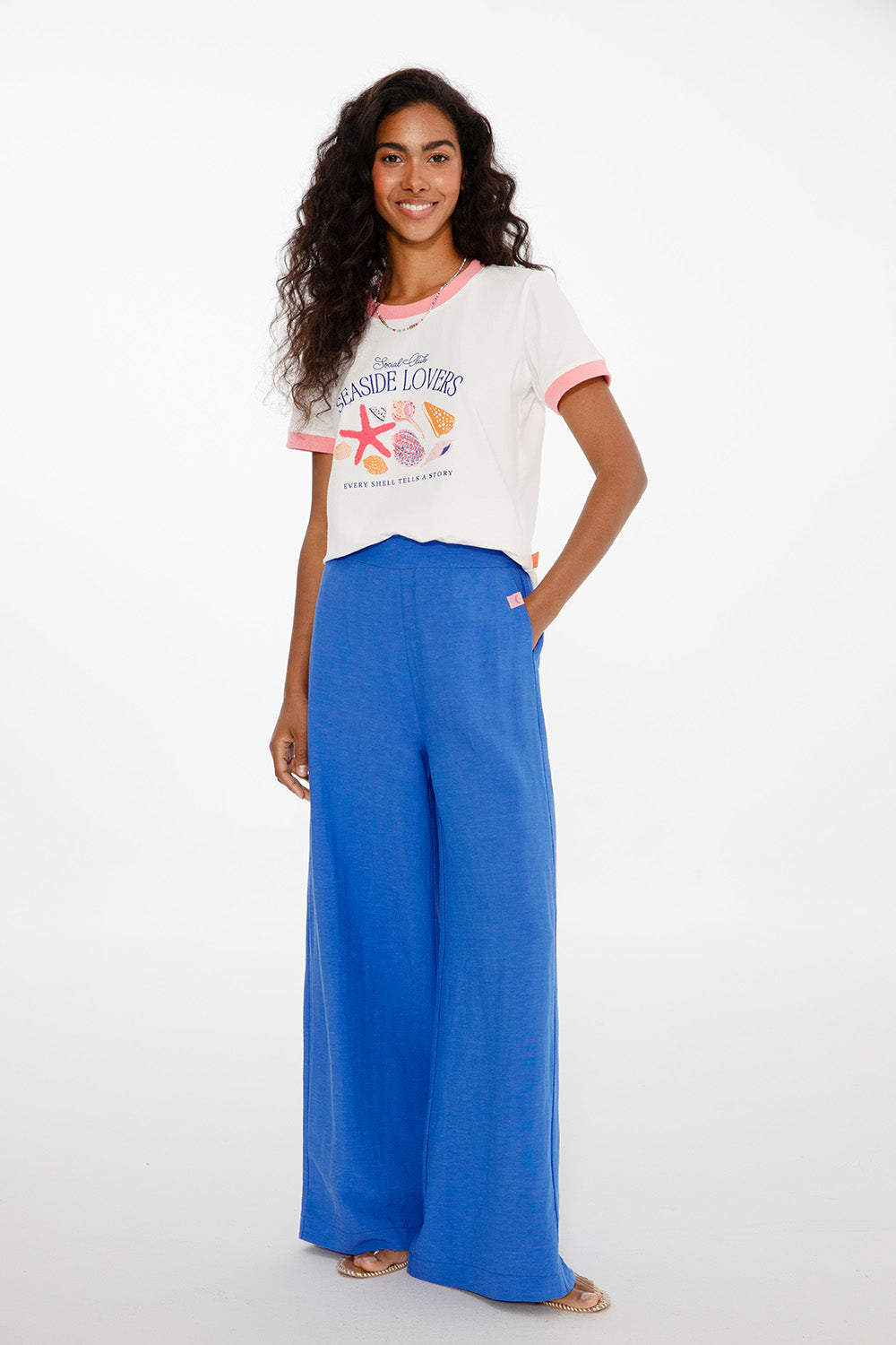Przyciągają wzrok - szerokie spodnie z lnem Blue Margarita to połączenie intensywnego koloru i maksymalnego komfortu. Uszyte z oddychającej mieszanki lnu i wiskozy, zapewniają swobodę ruchów i wakacyjny luz w najlepszym stylu.