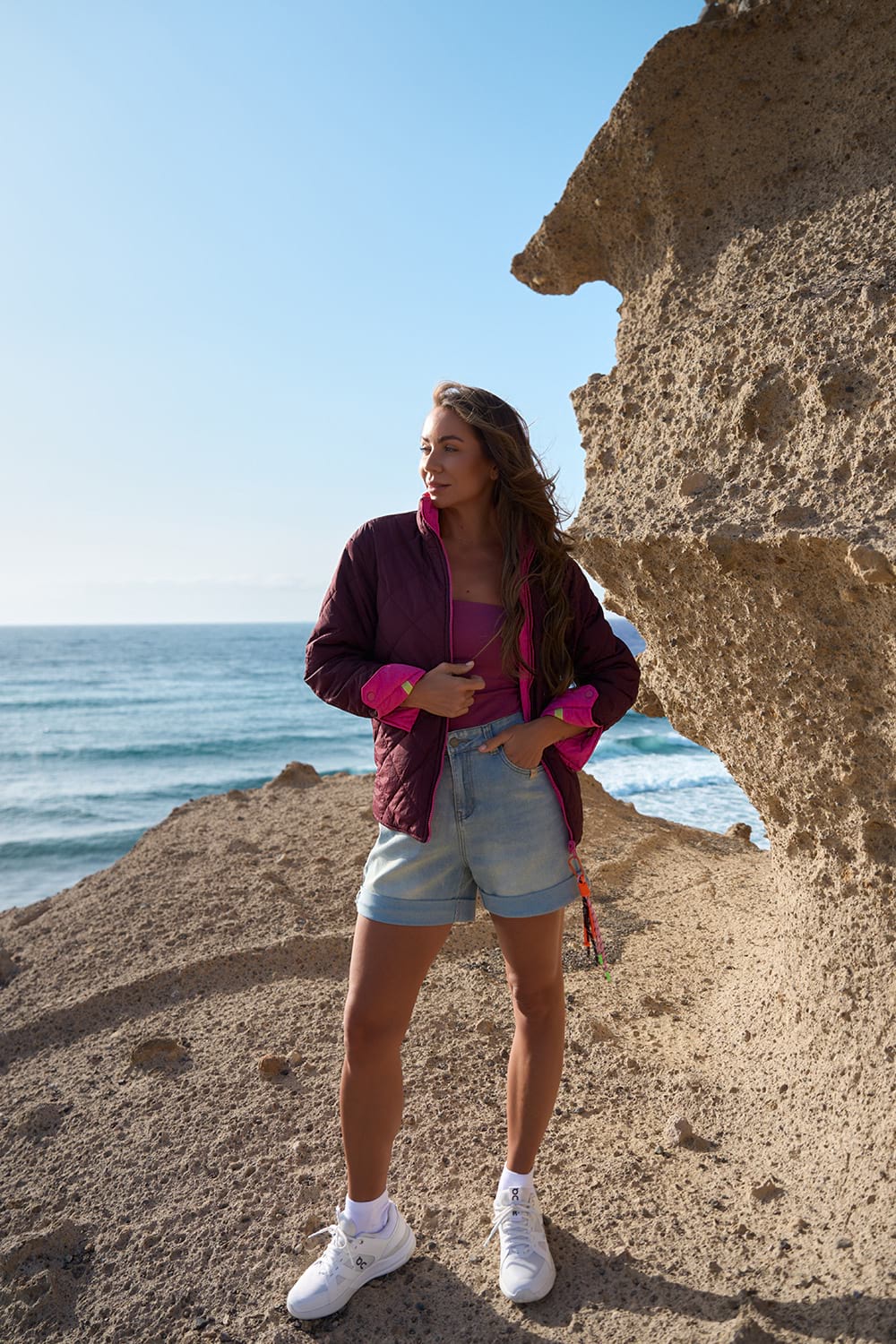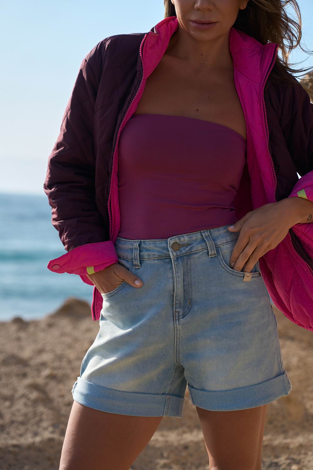 Wywijane nogawki i delikatnie podkreślona talia tworzą wygodną i kobiecą sylwetkę, a unikalne detale — jak różowe oczko i subtelna metka BOHO PRERIE — sprawiają, że ten model wyróżnia się na tle klasycznych jeansowych szortów. Załóż je do białej koszuli, tank topu albo kimona – i ruszaj na podbój miasta lub festiwalu.