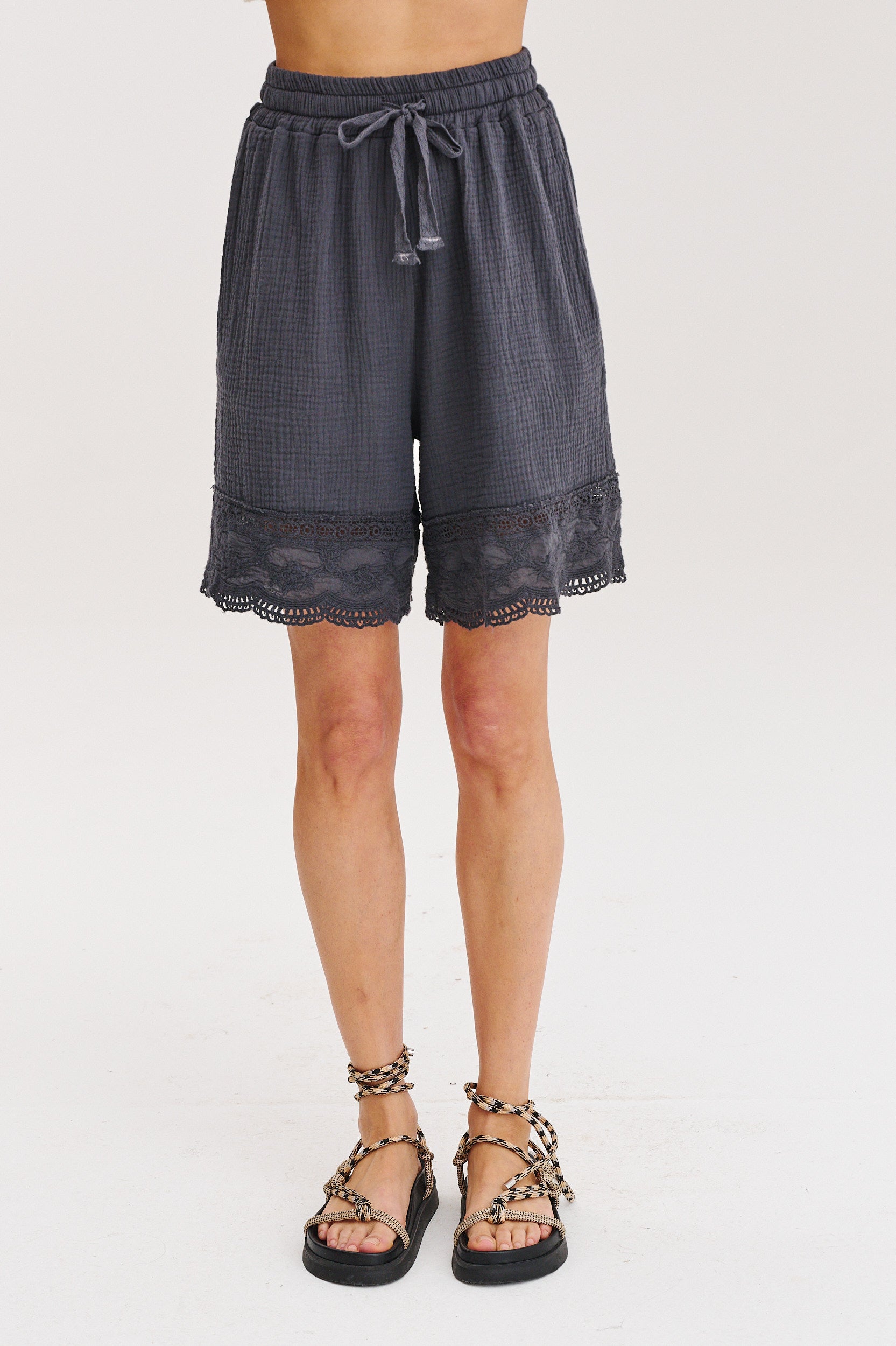 Jeśli cenisz sobie połączenie wygody i subtelnej elegancji – szorty muślinowe Midnight Bay powstały właśnie dla Ciebie. Uszyte z lekkiego, oddychającego muślinu i wykończone koronkową taśmą, która dodaje im kobiecego uroku.