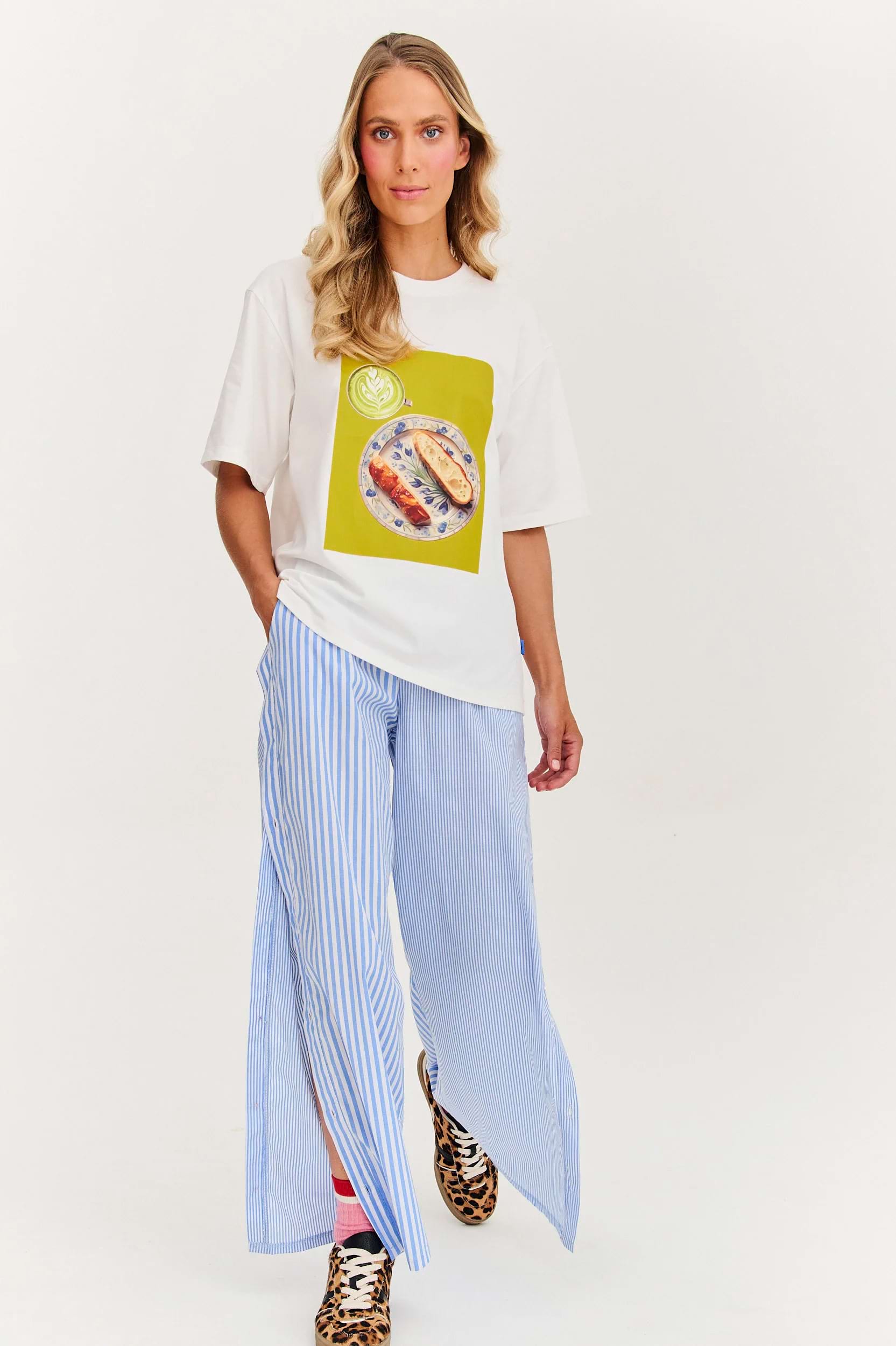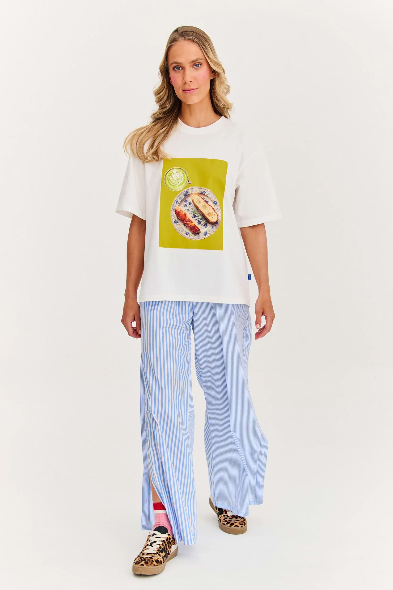 T-shirt Brunch Babe to apetyczny hołd dla leniwych poranków i stylowych śniadań. Grafika z aromatyczną kawą i pysznym tostem przenosi Cię w sam środek ulubionej kawiarni – bez ruszania się z domu.