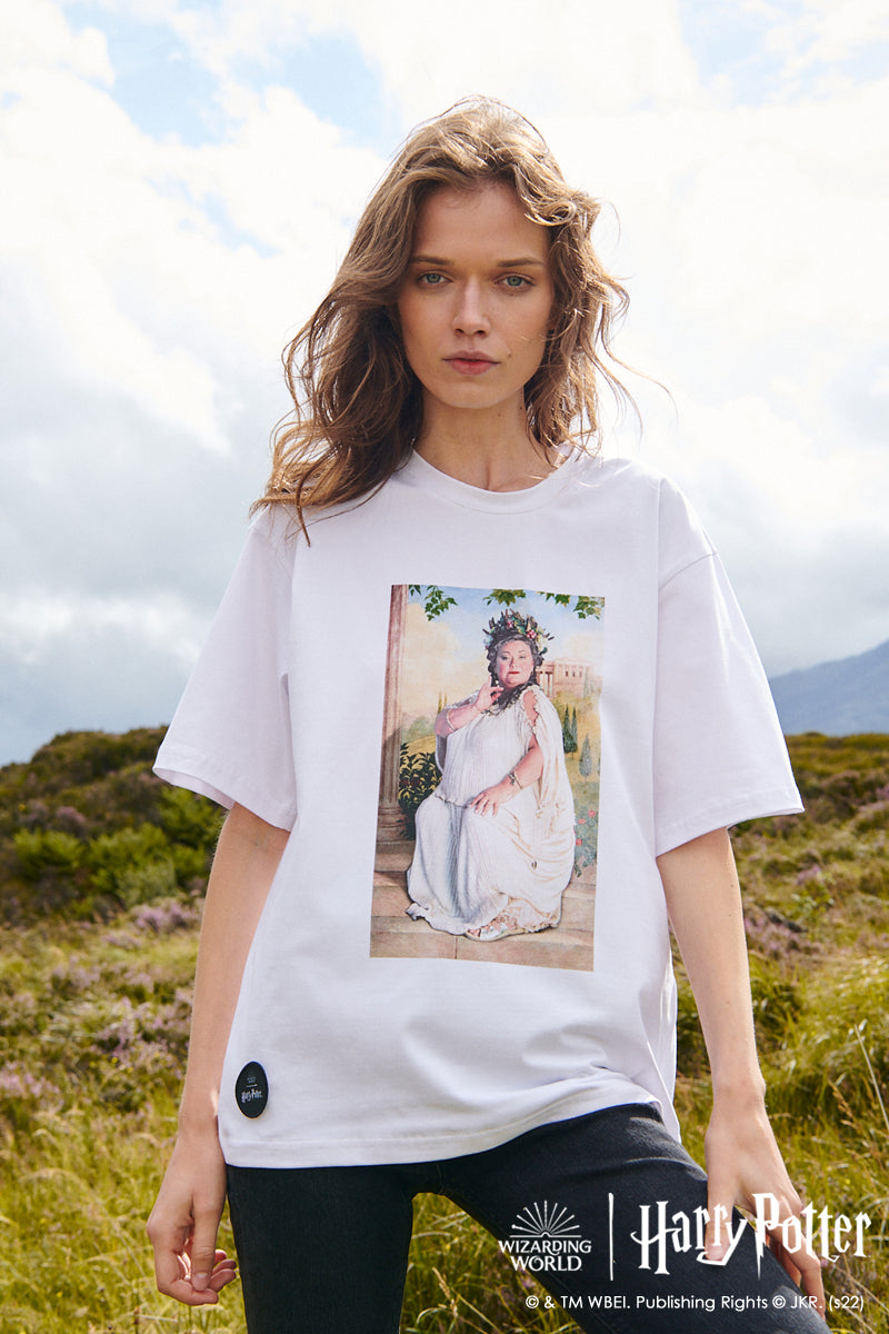 W tym T-shircie przyciągniesz spojrzenia, zczególnie wśród miłośników kultowej serii Harry Potter! Noś ją do ulubionych jeansów albo jako koszulkę pod zestaw marynarki i spodni w tym samym kolorze. Do tego dobierz kolorowe sneakersy i plecak.