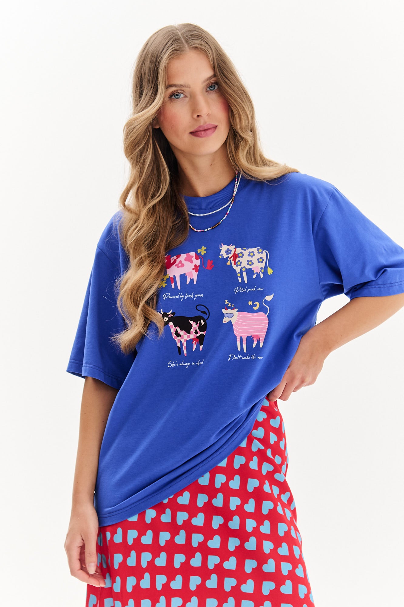 T-shirt Happy Moo to nie tylko wygodny basic, ale i dawka pozytywnej energii w Twojej szafie. Urocze grafiki kolorowych krów w zabawnym stylu sprawiają, że ten model to idealny wybór dla wszystkich #naokogirls z dystansem do siebie i świata.