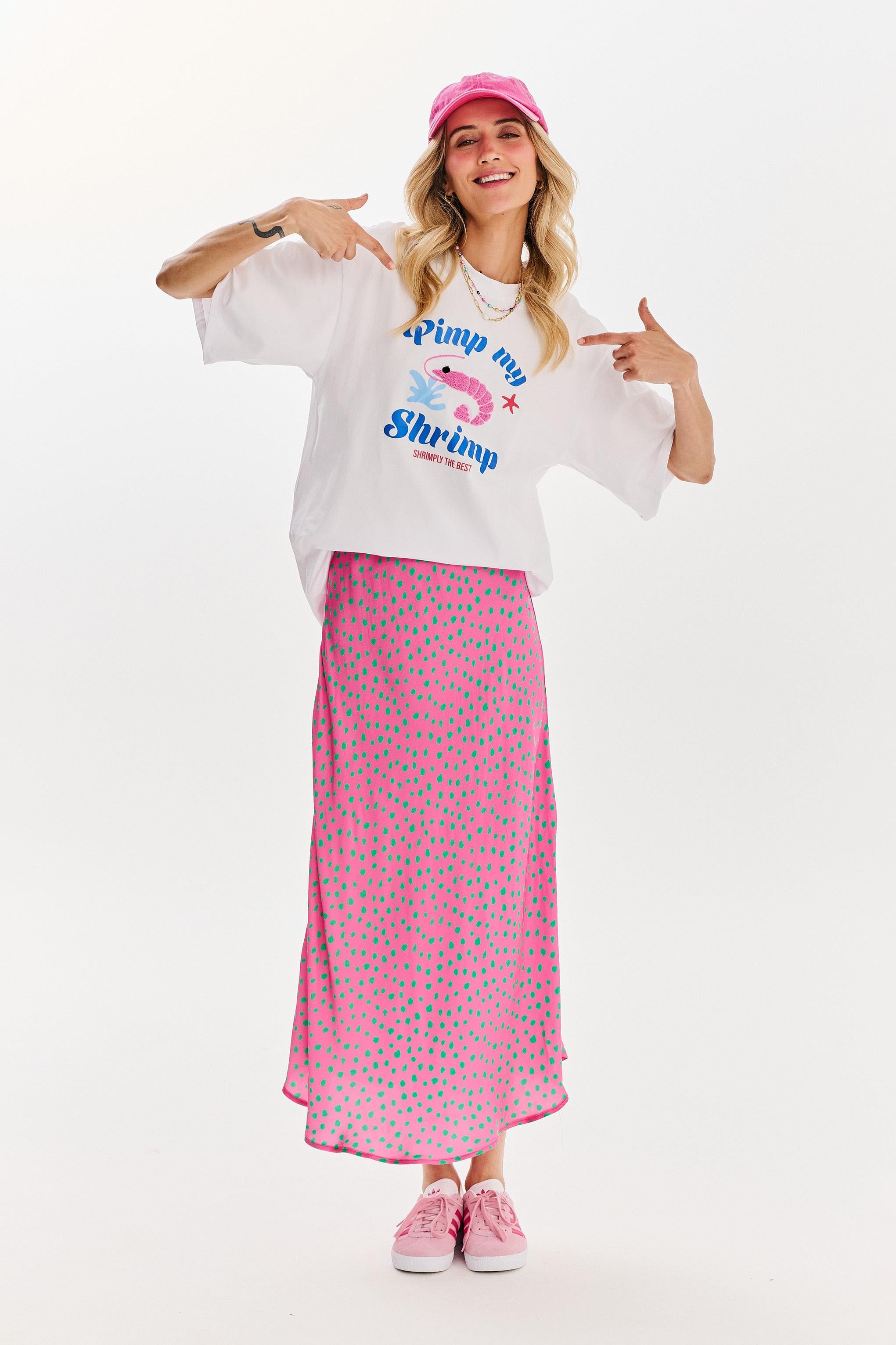 T-shirt Pimp My Shrimp to kwintesencja letniej energii i radości. Na koszulce w kolorze bieli wyróżnia się grafika z napisem 'Pimp my shrimp'.