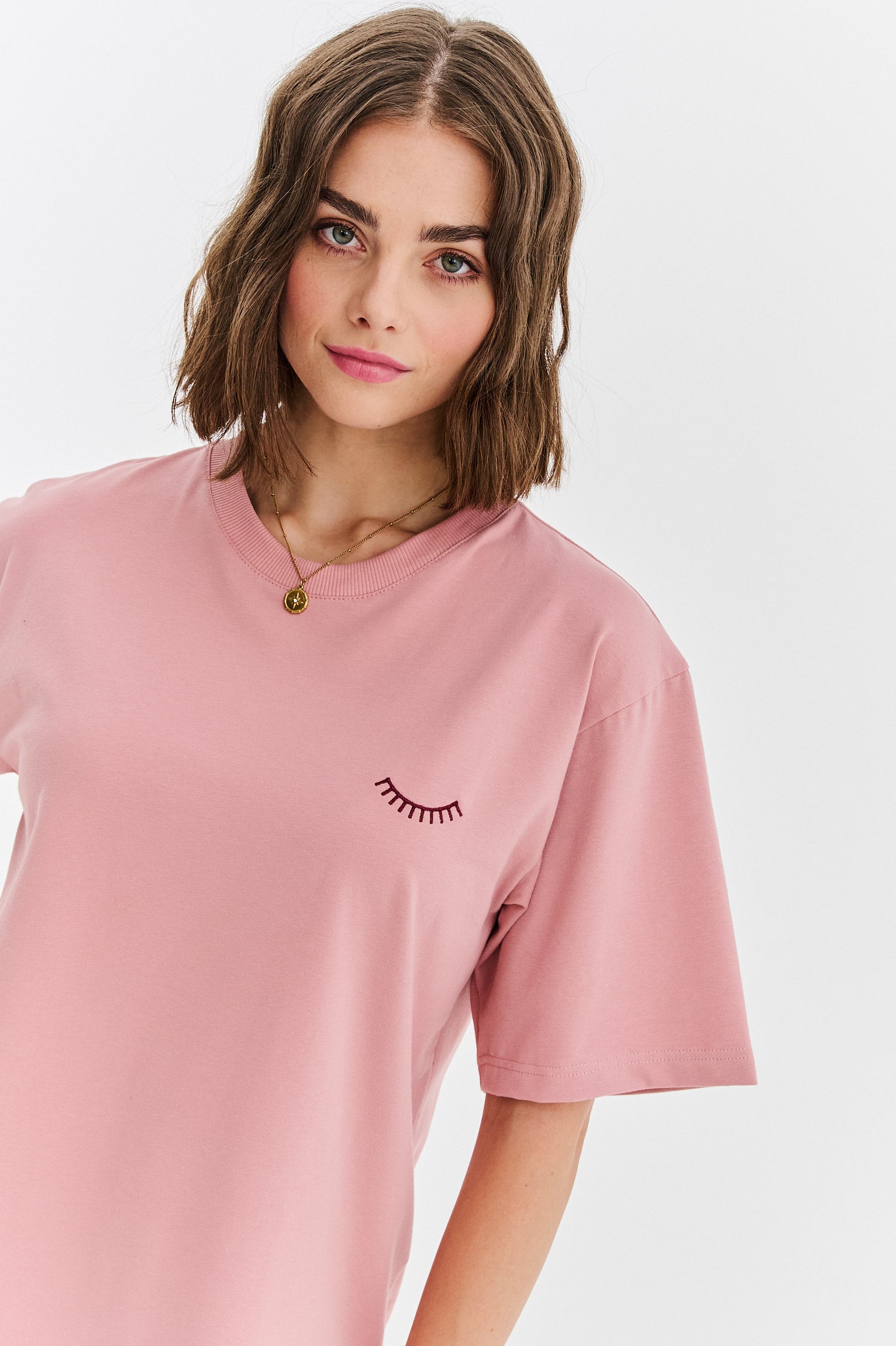 T-shirt Rosy Revolution to idealne połączenie prostoty i uroku. Wykonany z wysokiej jakości materiału, zapewnia komfort noszenia przez cały dzień. Jego pastelowy odcień różu rozświetli każdą cerę i będzie doskonałym tłem dla Twoich ulubionych dodatków.