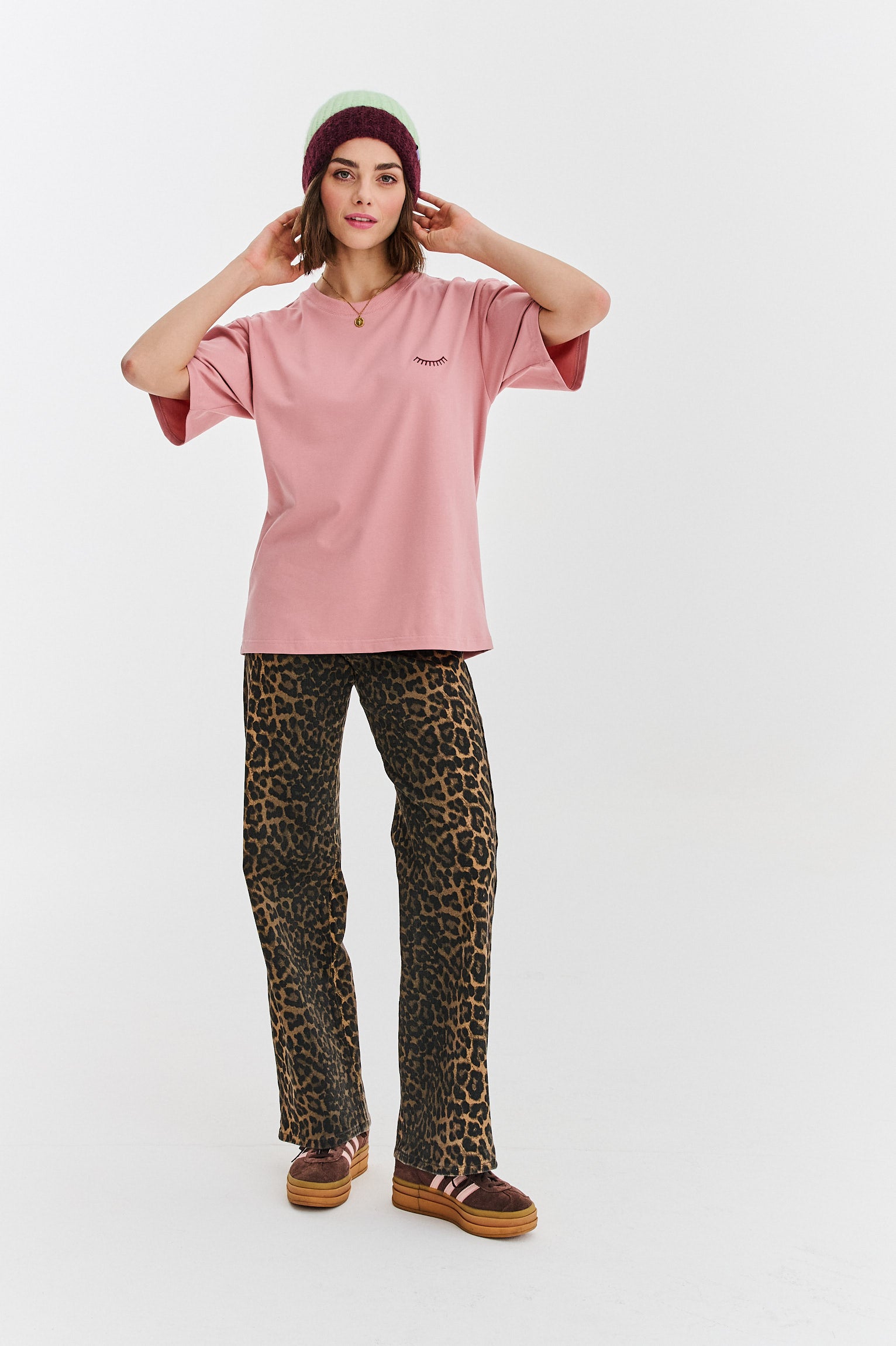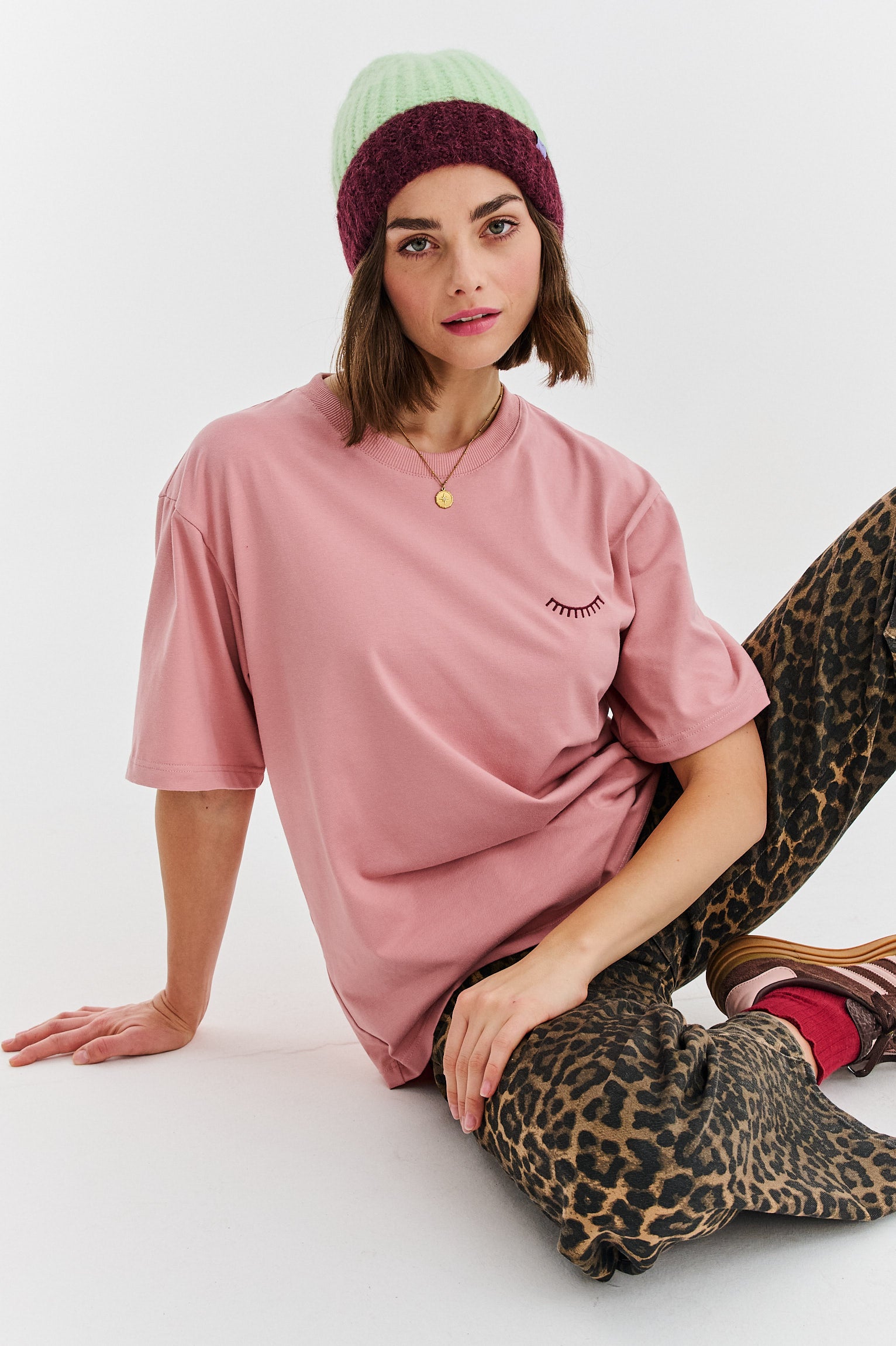 Charakterystyczny haft w kształcie rzęs to dyskretny, ale rozpoznawalny detal, który wyróżnia koszulkę. Noś ją do jeansów, spódnic czy pod marynarkę – T-shirt Rosy Revolution sprawdzi się w każdej sytuacji, dodając stylizacji lekkości i świeżości.