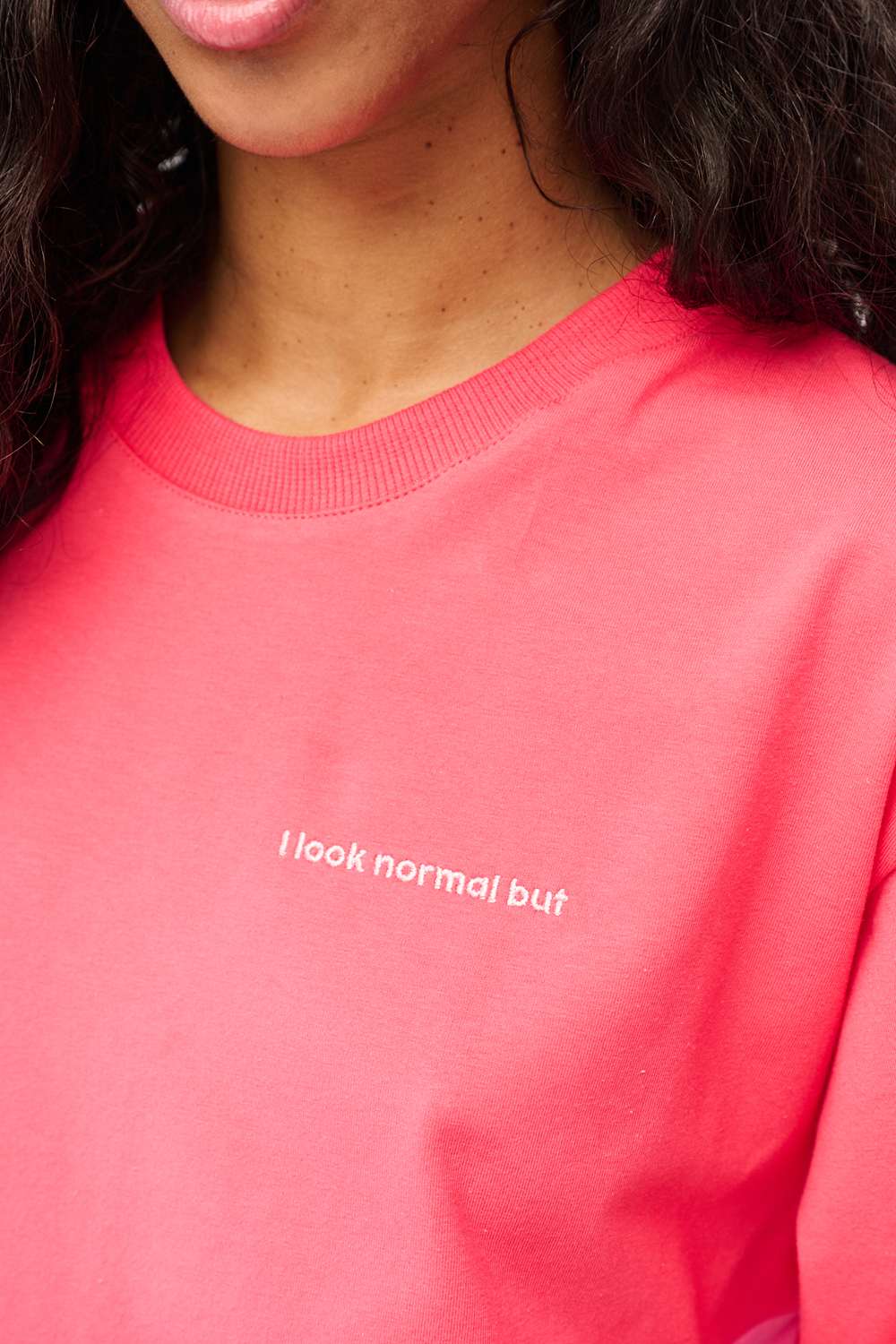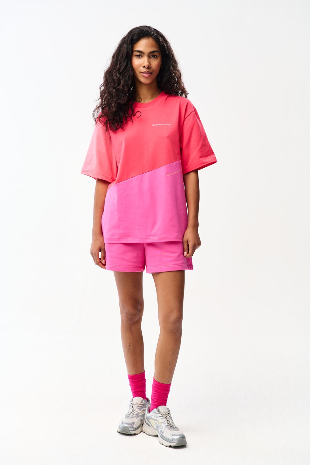 T-shirt Socially Selective stawia na odważne połączenie kolorystyczne. Kontrastowe panele w odcieniach koralu i różu tworzą dynamiczną całość, którą dopełnia haftowany napis. Luźny fason zapewnia swobodę, a miękki materiał sprawia, że nie będziesz chciała go zdejmować.