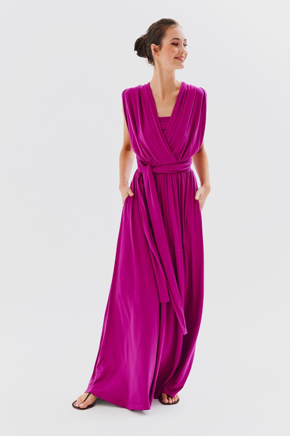 Top infinity Magenta Love to prawdziwy must-have w każdej kapsułowej garderobie. Wykonany z elastycznego, miękkiego materiału, pięknie układa się na ciele i zapewnia pełen komfort noszenia. Mocny, wyrazisty kolor i świetny krój, który sprawdzi się jako lekki top do sukienek i kombinezonów infinity. Będzie on doskonałą propozycją dla wszystkich potrzebujących zakryć trochę więcej w sukienkach i kombinezonach infinity.