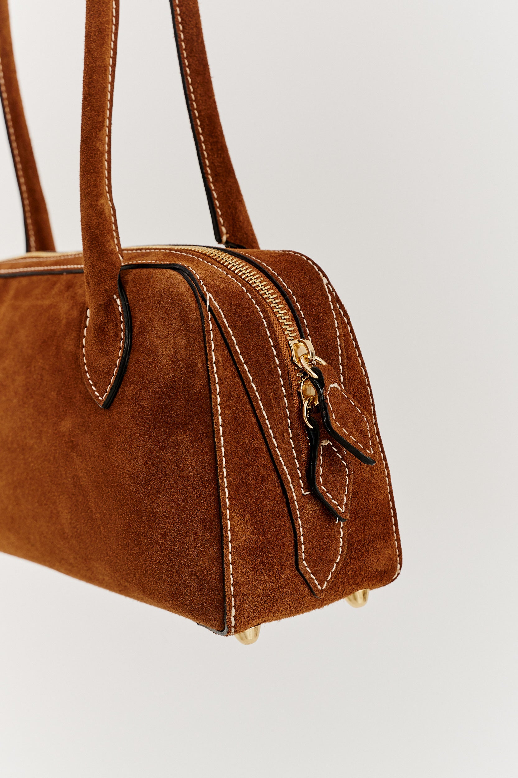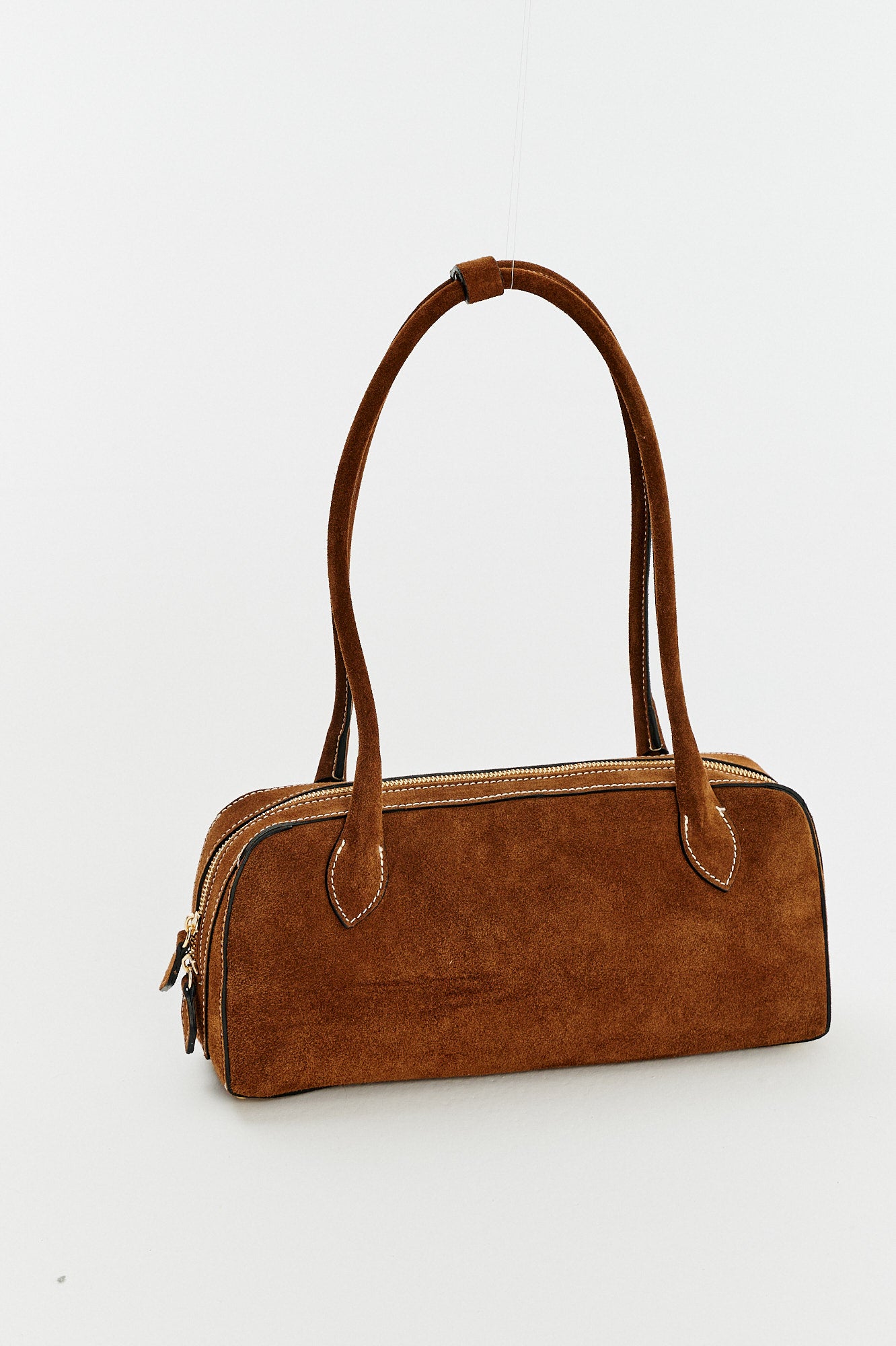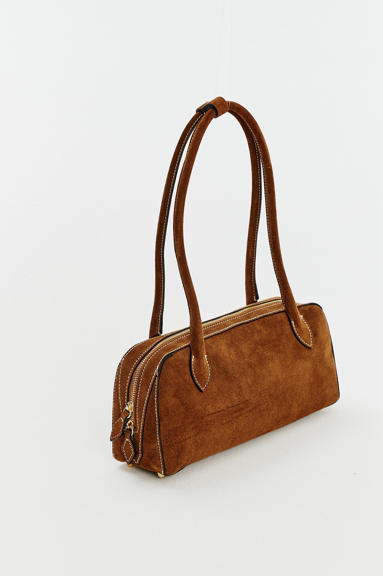 Torebka Baguette Chocolate Touch to ponadczasowa elegancja w zamszowym, czekoladowym odcieniu. Jej klasyczny kształt inspirowany stylistyką retro łączy się z wyjątkową fakturą zamszu, tworząc model idealny na co dzień i na wyjątkowe okazje.