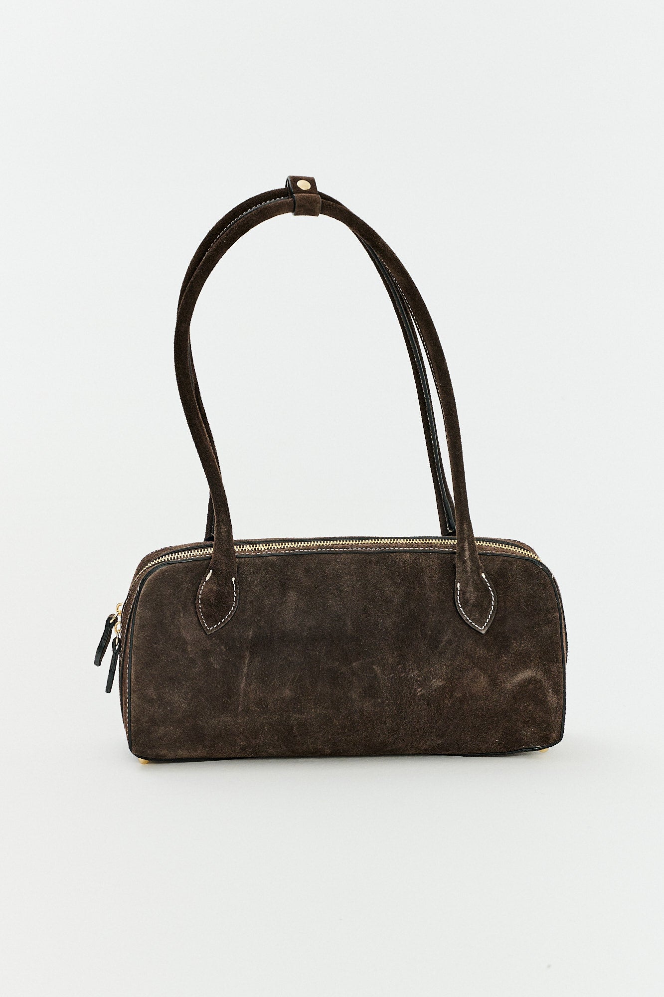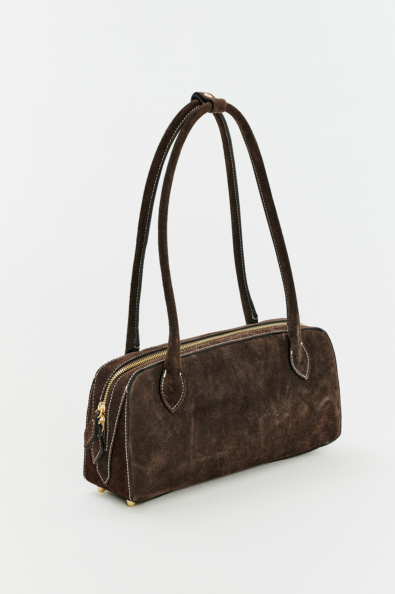 Torebka baguette Espresso Noir to ponadczasowa elegancja w zamszowym, ciemno czekoladowym odcieniu. Jej klasyczny kształt inspirowany stylistyką retro łączy się z wyjątkową fakturą zamszu, tworząc model idealny na co dzień i na wyjątkowe okazje.