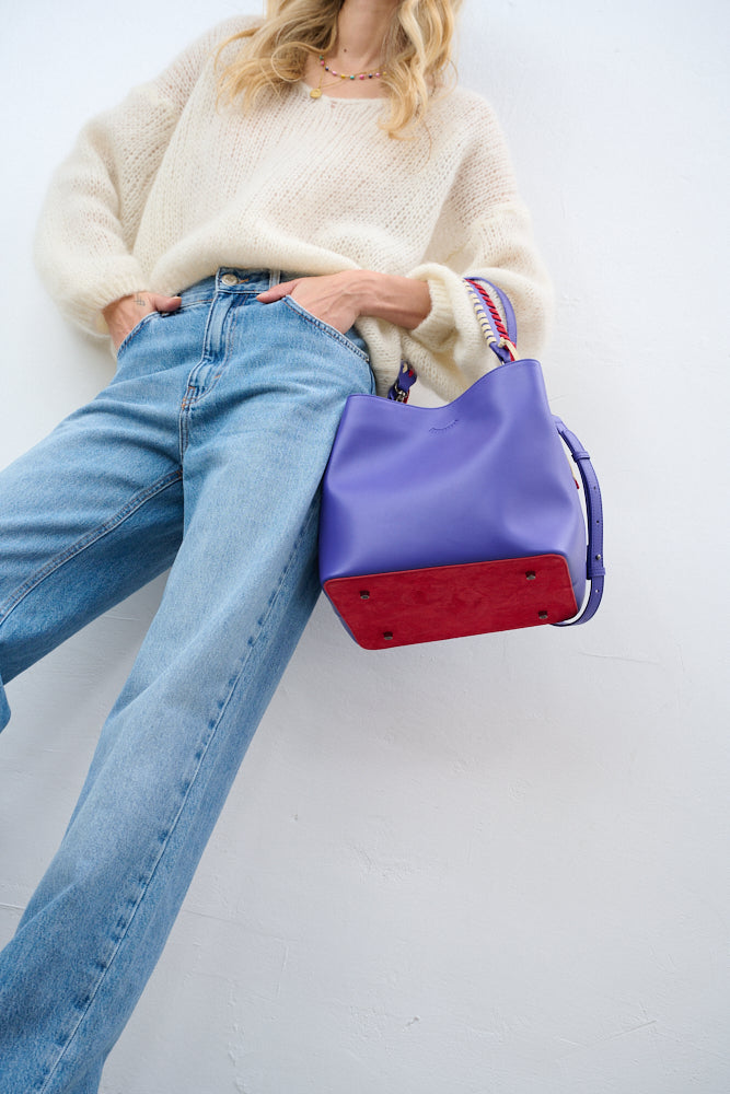 Torebka Daydream Mode to idealny wybór dla kobiet, które kochają kolor i unikalne detale. Ten model o kroju worka zachwyca głównym kolorem w odcieniu nasyconego błękitu, który został podbity kontrastowym, czerwonym kolorem, na spodzie.