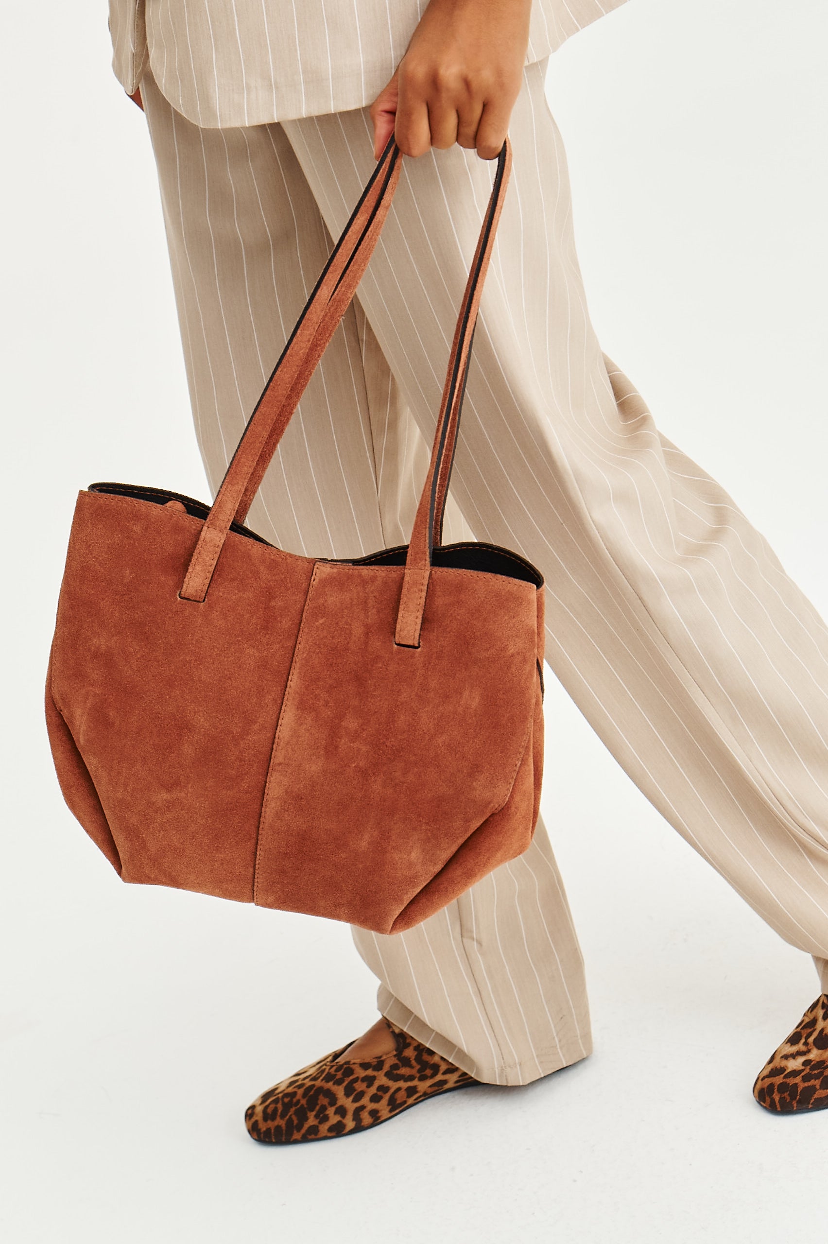 Klasyka, która nigdy nie wychodzi z mody. Torebka skórzana typu shopper Rosy Glow to połączenie subtelności z funkcjonalnością – wykonana z wysokogatunkowej, naturalnej skóry o zamszowym wykończeniu w odcieniu cynamonu. Delikatna faktura nadaje jej eleganckiego blasku, który przyciąga wzrok, ale nie dominuje stylizacji – doskonale dopełnia każdy look.