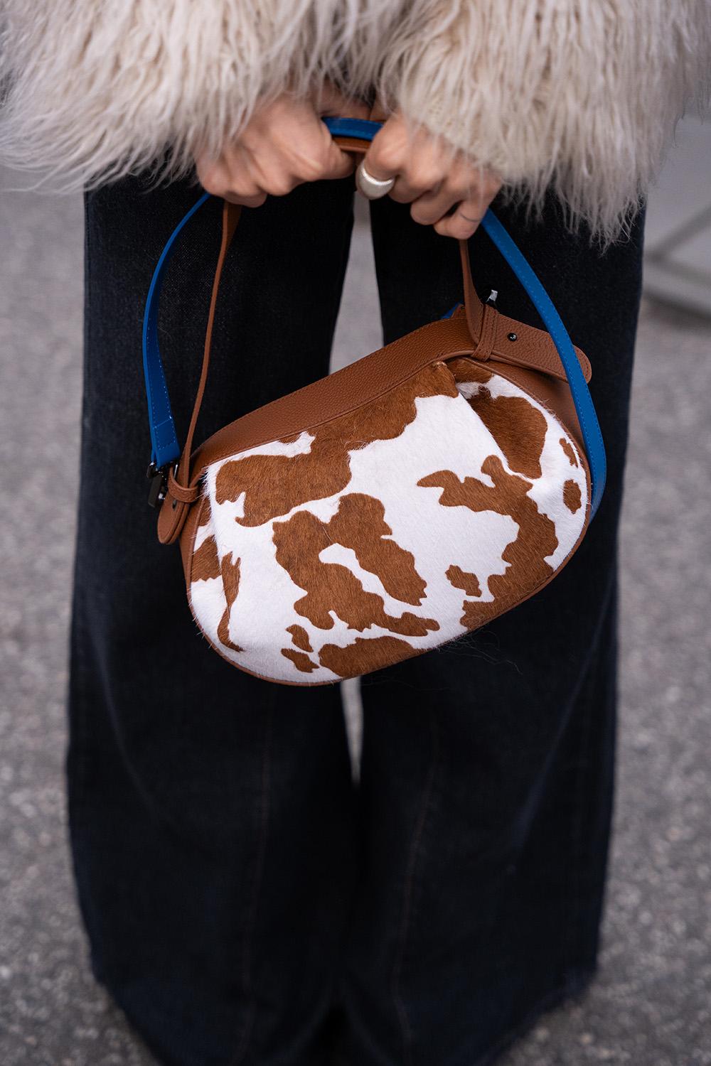 Torebka Wild Rodeo to absolutny must-have dla każdej fashionistki. Model idealnie wpisuje się w trendy, łącząc klasyczny kształt torebki na ramię z odważnym, brązowo-białym wzorem krowich łat. To dodatek, który odmieni całą stylizację.