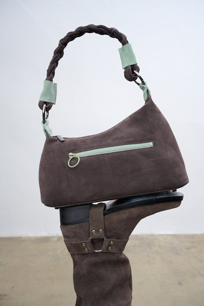 Torebka zamszowa Mint Chocolate to idealna propozycja dla miłośniczek stylu boho i najwyższej jakości. Wykonana z luksusowego, miękkiego zamszu w kolorze ciemnego brązu, zachwyca swoją fakturą i ponadczasowym krojem typu "hobo bag".