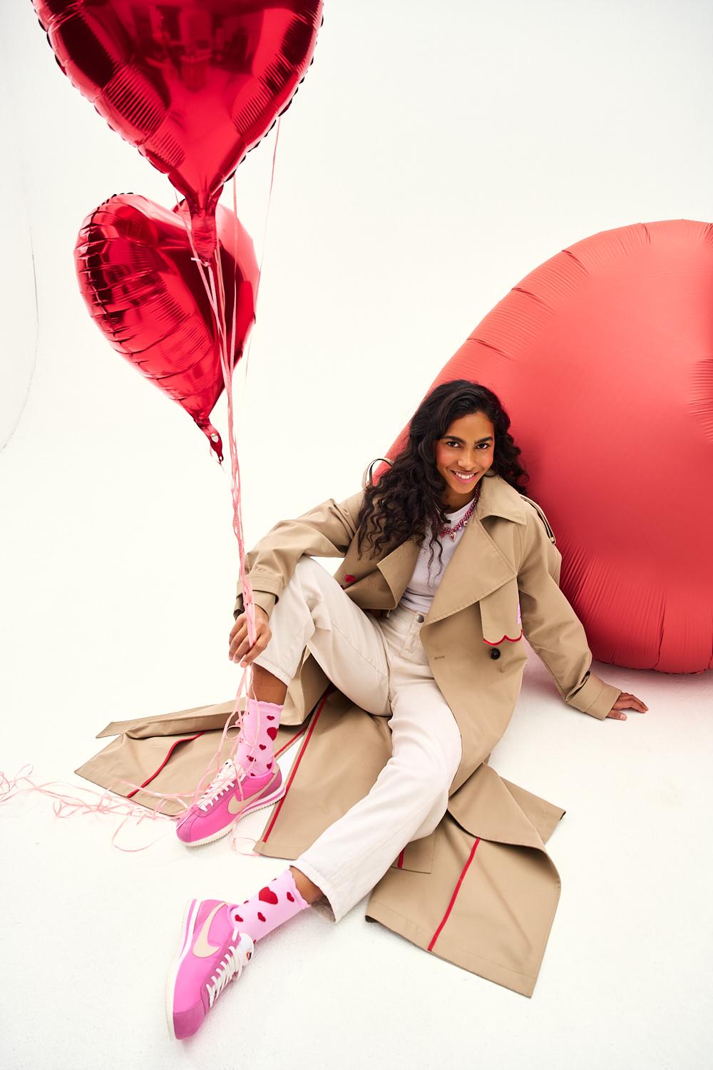 Trencz Cross My Heart to więcej niż płaszcz – to manifestacja uczuć. Klasyczny fason dwurzędowego trencza zyskał nową energię dzięki haftom w kółko i krzyżyk oraz serca.