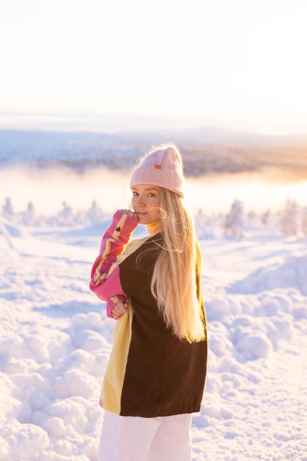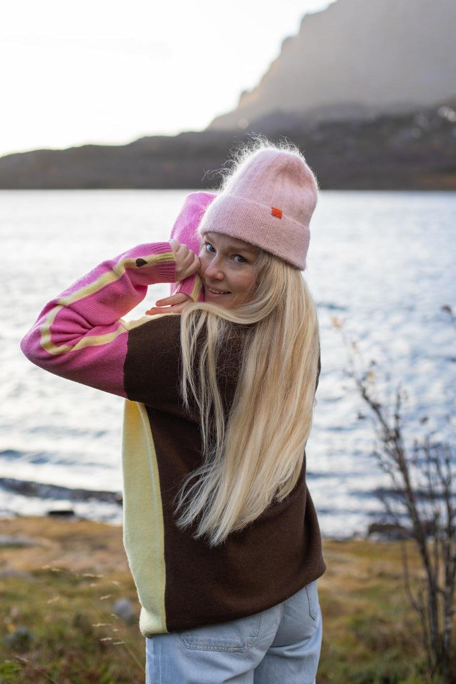 Wełniany sweter z golfem Shine Bright to subtelny, a zarazem wyrazisty element garderoby, który oczaruje Cię swoim wyjątkowym połączeniem kolorów oraz niezwykle przyjemnym w dotyku wykończeniem. Model ten zachwyca kontrastowymi kolorami i ich zestawieniem: róż, kolor żółty i brąz, które idealnie przełamują główną barwę swetra i nadają mu świeżości. Mięsista, elastyczna dzianina sprawia, że golf doskonale otula sylwetkę, zapewniając komfort nawet podczas najchłodniejszych dni. Wysoki kołnierz ochroni Cię przed wiatrem, a wyraziste szwy i pastelowe detale dodają swetrowi nowoczesnego charakteru.