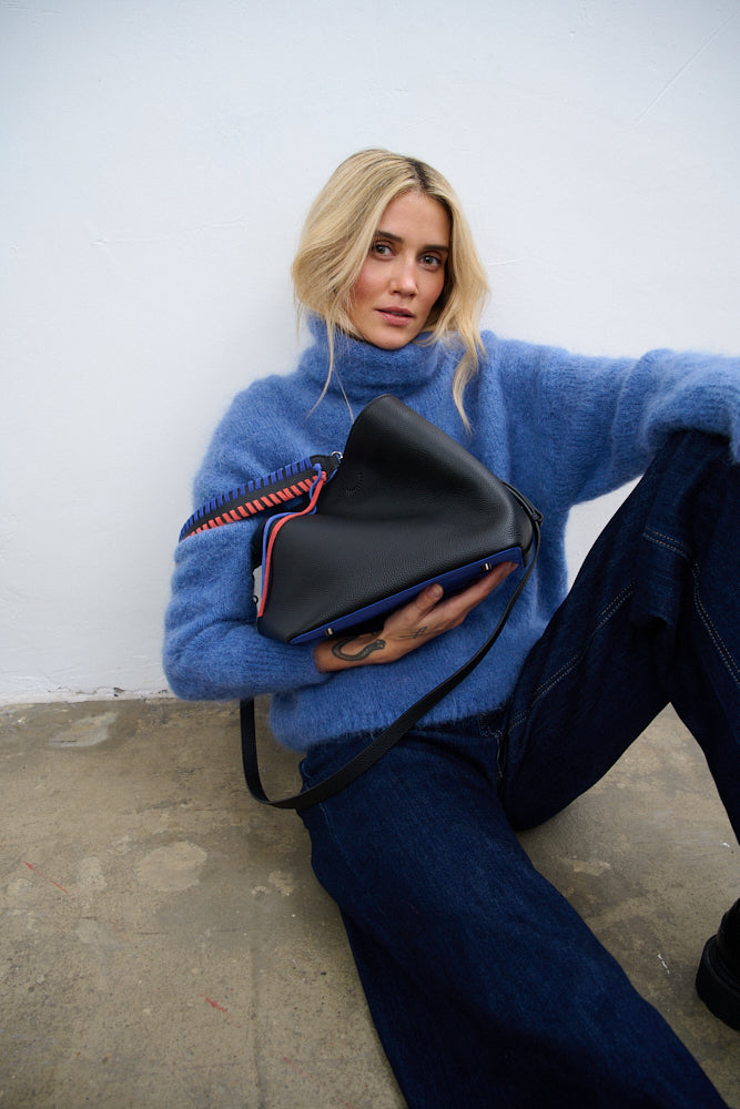 Jasny, miękki sweter tworzy harmonijny kontrast z futurystycznym połyskiem torebki Electric Night. To połączenie ciepła i minimalizmu z odważnym, modowym akcentem, które doskonale sprawdzi się zarówno w codziennych zestawach, jak i na wieczorne wyjścia, gdy chcesz pozostać w strefie komfortu, ale nie rezygnować z efektownego stylu.