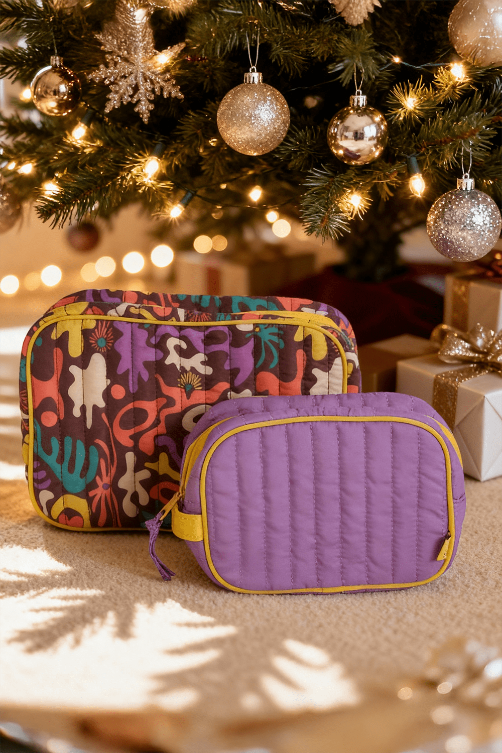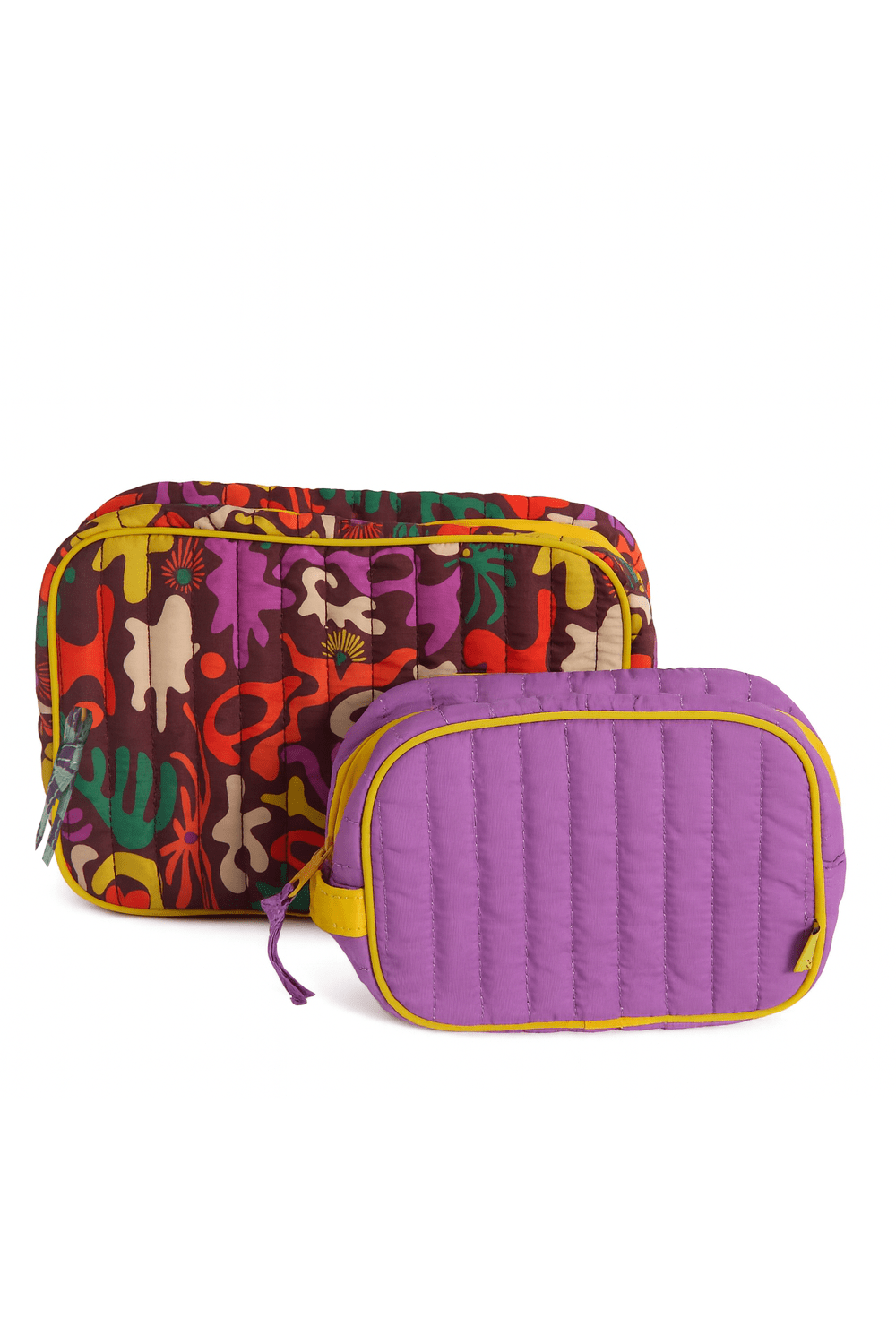 Zestaw kosmetyczek Yes Please to must-have każdej podróżniczki. Żywe kolory i artystyczny print sprawiają, że łatwo znajdziesz je w bagażu. Wykonane z pikowanego materiału, są miękkie, a zarazem wytrzymałe, chroniąc zawartość. Zestaw zawiera dwie wielkości, idealne na dłuższe wyjazdy i weekendowe wypady.