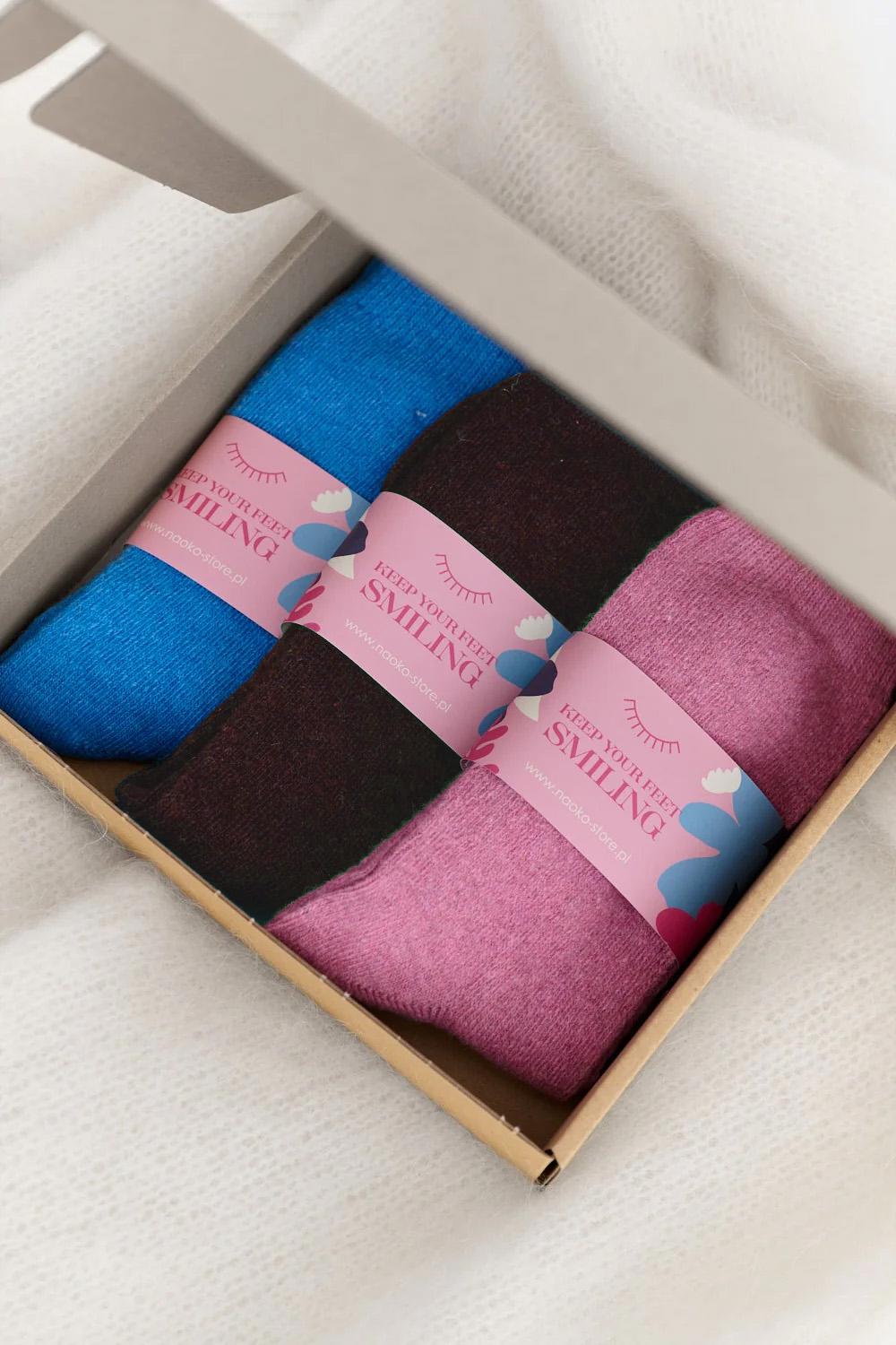 Zestaw skarpetek wełnianych Barefoot Club to Twój najlepszy sposób na komfort w chłodne dni. W uroczym pudełku znajdziesz trzy pary gładkich skarpet, każdą w innym, wyrazistym kolorze, które ożywią Twoją jesienno-zimową garderobę.