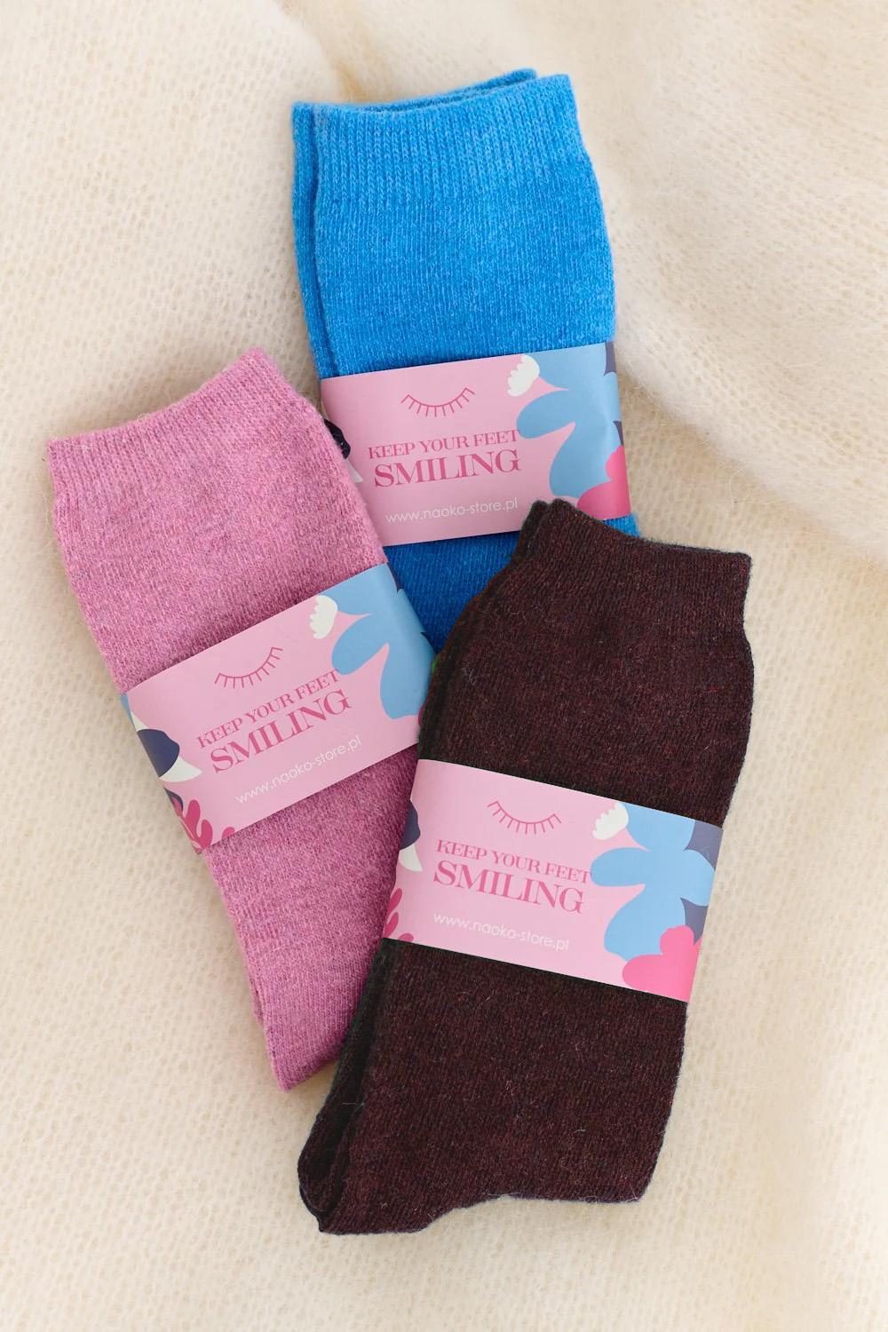 Skarpety wykonano z wysokiej jakości mieszanki przędz z dodatkiem wełny i kaszmiru, dzięki czemu są niezwykle miękkie i skutecznie chronią przed zimnem. Elastyczny ściągacz dobrze trzyma skarpetę na nodze, nie powodując ucisku. Idealne do zimowych butów lub na relaks w domu.
