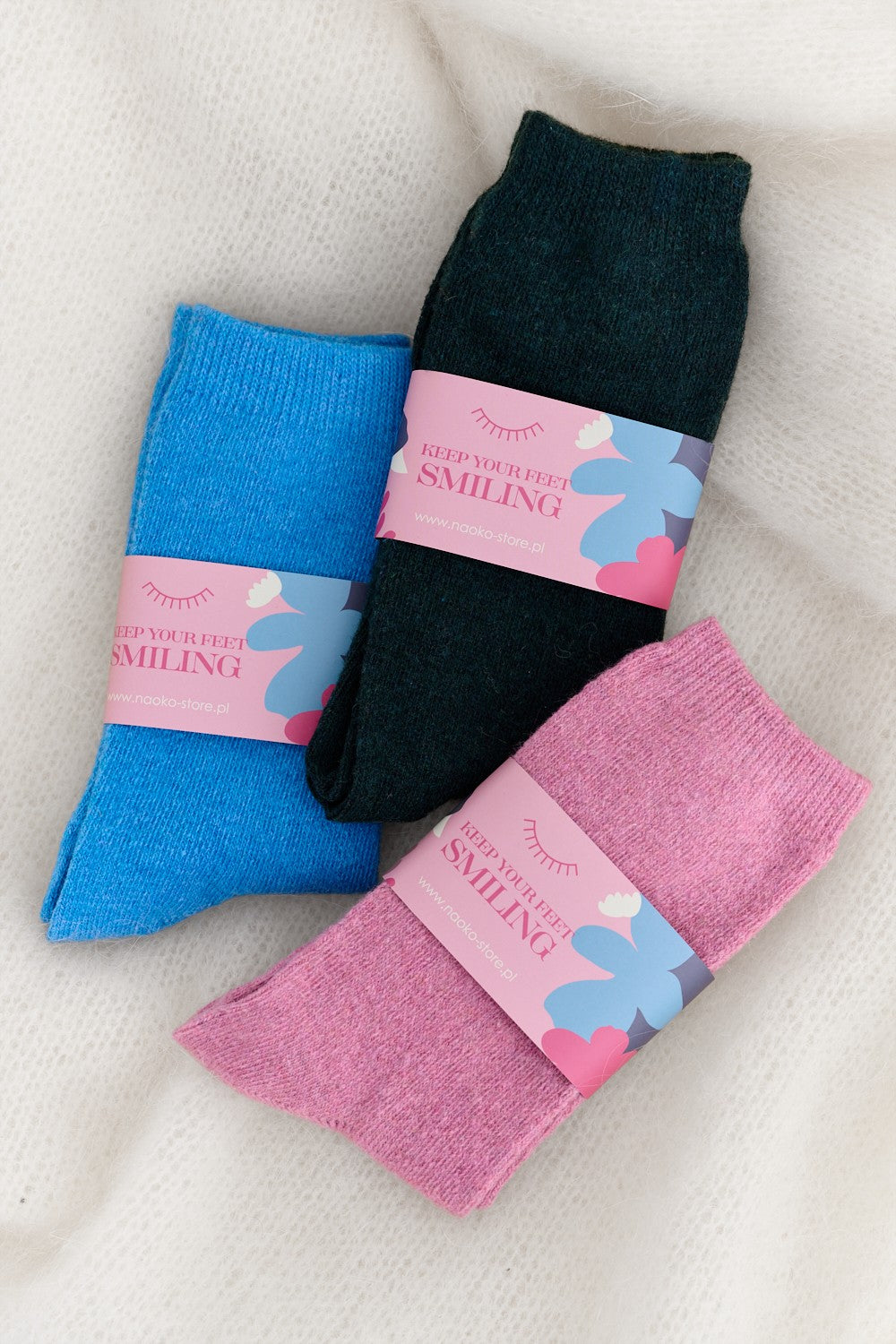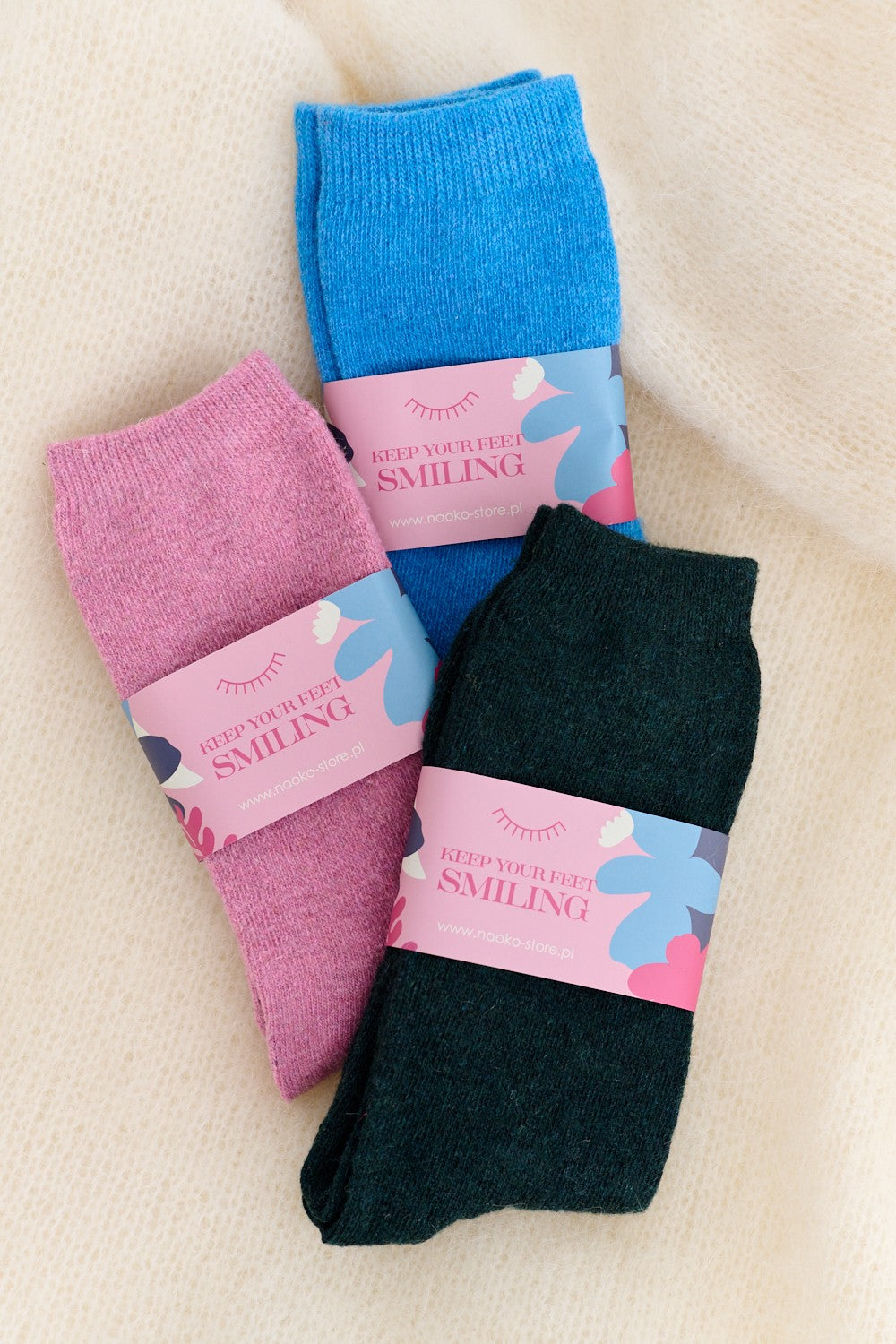 Zestaw skarpetek wełnianych Barefoot Club to Twój najlepszy sposób na komfort w chłodne dni. W uroczym pudełku znajdziesz trzy pary gładkich skarpet, każdą w innym, wyrazistym kolorze, które ożywią Twoją jesienno-zimową garderobę.