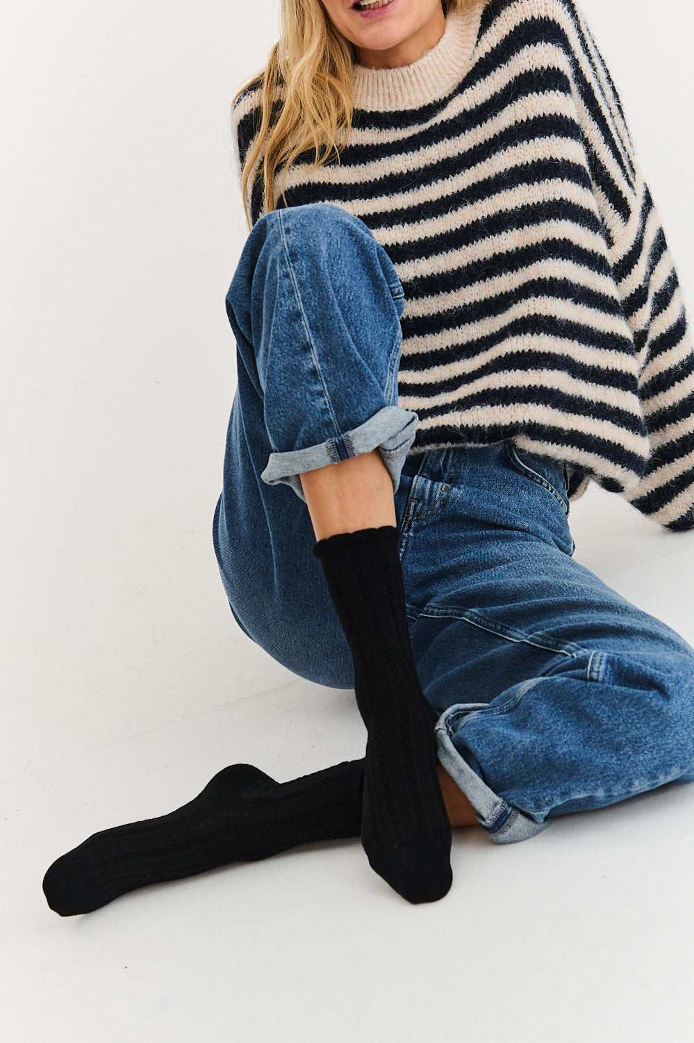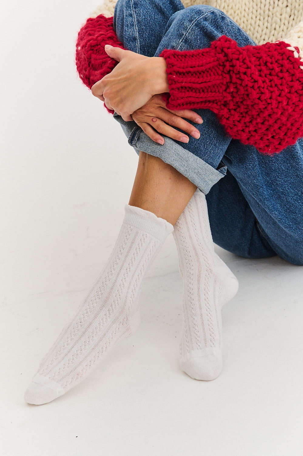 Wykonane z przyjemnej w dotyku bawełnianej dzianiny, zapewniają komfort przez cały dzień. Ażurowy, warkoczowy splot dodaje im wyjątkowego uroku w stylu retro. To idealny sposób, by przełamać codzienne stylizacje i dodać im uroku.