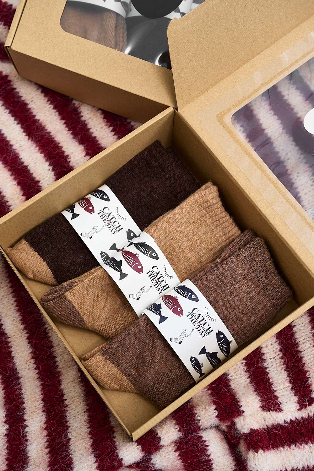 Zestaw skarpetek z wełną i kaszmirem Calm Morning to trio, które zadba o ciepło Twoich stóp w najlepszym stylu. W komplecie znajdują się trzy pary skarpet w stonowanych, ziemistych kolorach: jasnobeżowym, ciemnobrązowym i średnim brązie. Wykonane z luksusowej mieszanki z dużą zawartością wełny i domieszką kaszmiru, są niezwykle miękkie i ciepłe.