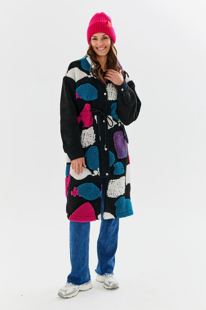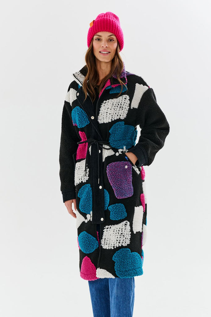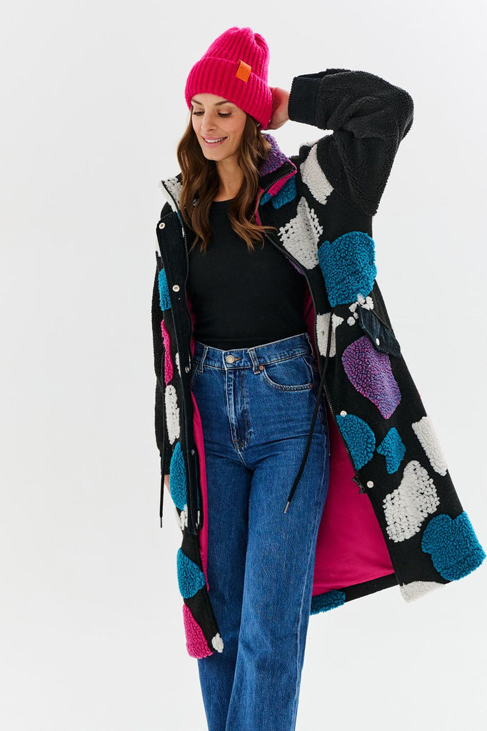 Jeśli jesteś fanką oryginalnych rozwiązań, płaszcz Teddy Candy Dream będzie dla Ciebie idealną propozycją! Noś go na co dzień, podczas załatwiania spraw na mieście oraz na specjalne okazje, takie jak rodzinny obiad czy spotkanie z przyjaciółkami. Jego prosty krój oraz przyjemny materiał będą idealne na sezon jesienno-zimowy.