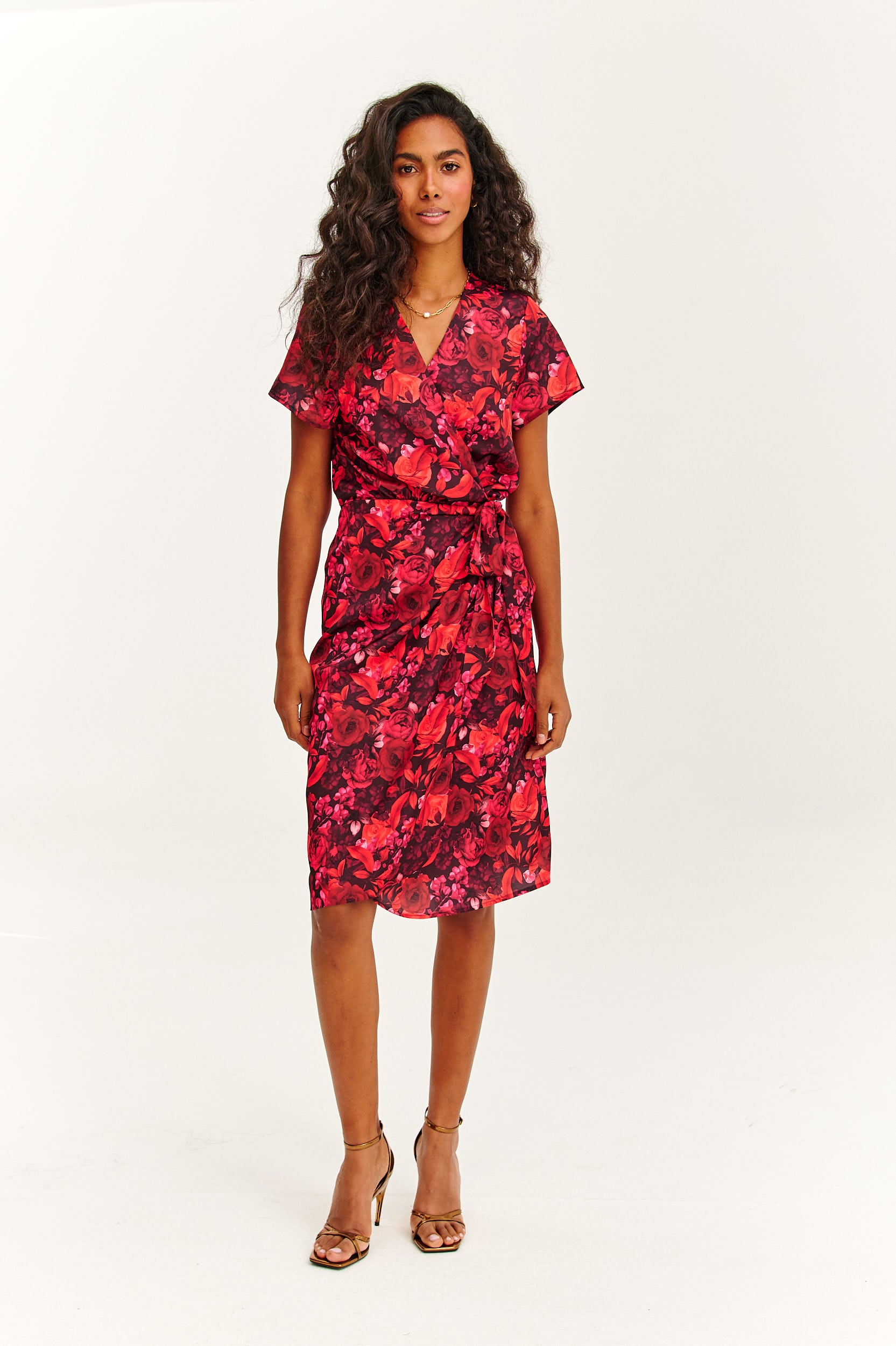Miękka wiskoza sprawia, że sukienka układa się z lekkością i nie krępuje ruchów. Dzięki możliwości wiązania, dopasowujesz ją tak, jak lubisz – bardziej podkreślona talia, luźniejszy efekt, wszystko zależy od Ciebie. Rosso Incanto to idealna sukienka na lato, spotkanie, uroczystość – albo po prostu na dzień, w którym chcesz wyglądać wyjątkowo.
